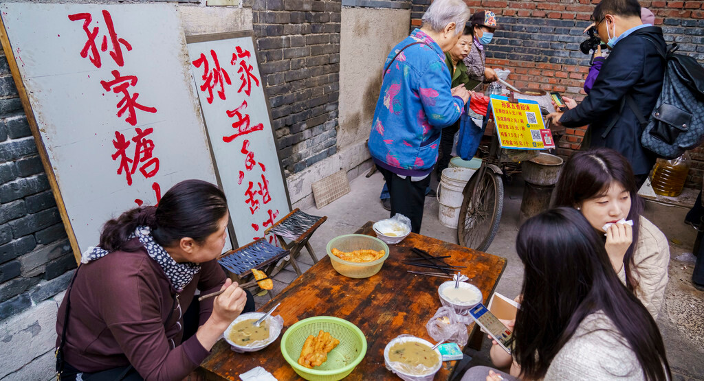 来济南旅行一定要早起一次,因为在大明湖畔除了漂亮的日出风景,还有一道济南本地人所钟爱的早餐——甜沫!这一次打卡的是十几年老店,6点过来就已经坐满了本地人,店铺虽然就是墙边一块空地,但氛围感确实很不错。