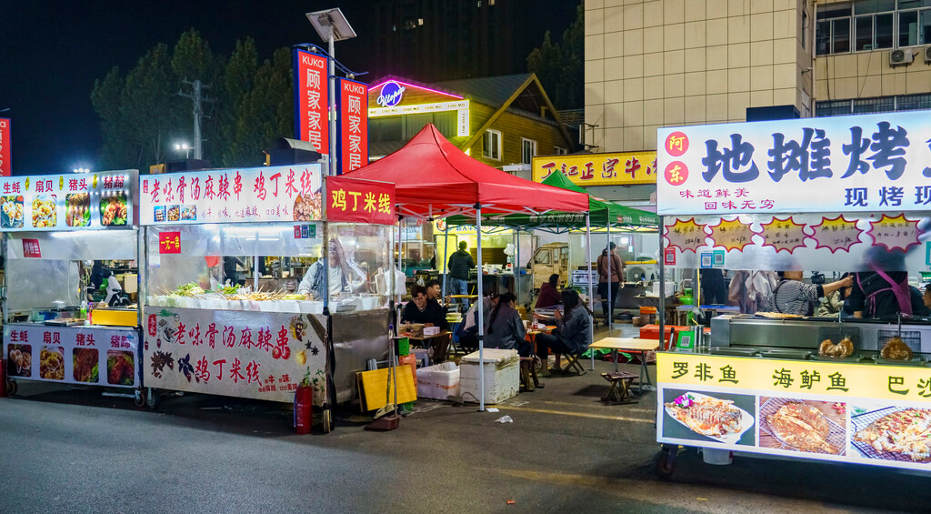 看完尼山圣境的节目之后,驱车来到济宁市区,正在纠结吃什么的时候,本地网友推荐了【金宇夜市】,这里不同于传统美食街上以各类店铺为主,主打的就是“接地气”,各种特色小吃以摊车的形式分布在这条街上,年轻人们随便点上几份,就在路边小桌开吃,氛围真的很不错~