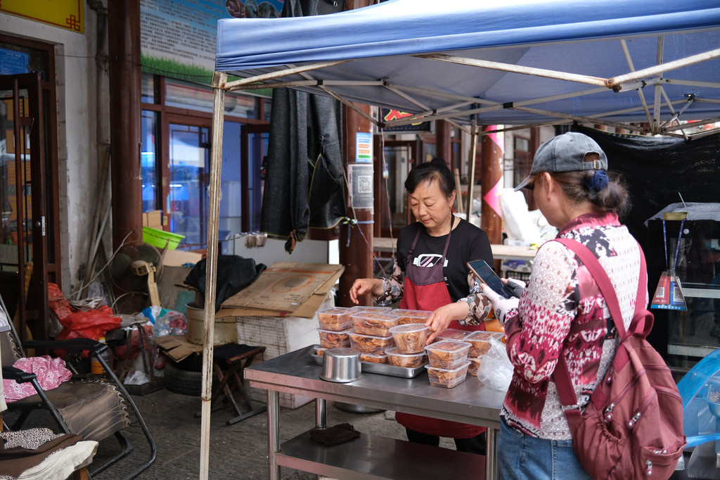 穿过市场我们往回走,路边有好多博山菜饭店。