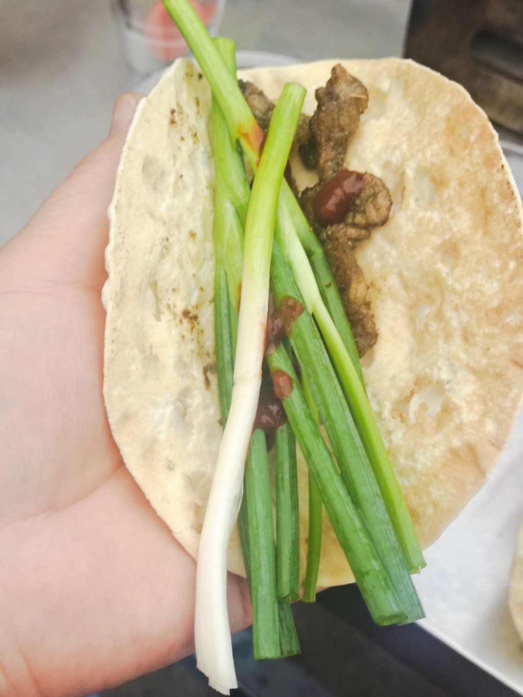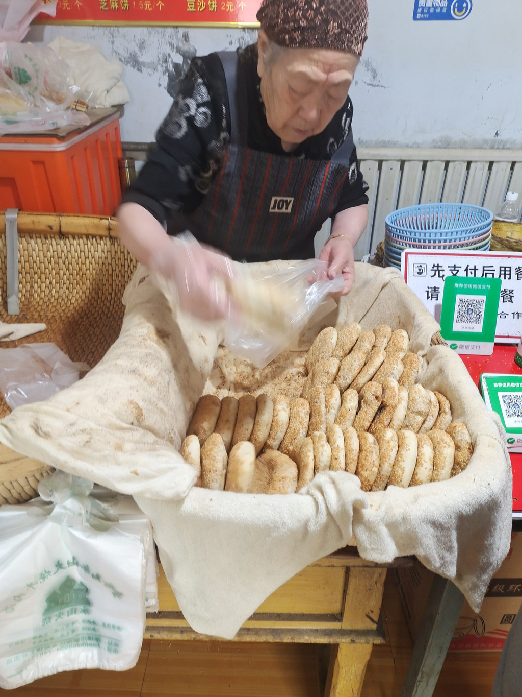 上午11点半到达金岭镇,正逢大集,还是周六,车多人多,基本都是当地车。我们在街上走走看看,买的菜和牛肉,然后去马永山火烧牛肉汤店(网红店)吃饭。门头不大,里面吃饭的地方挺大,收款的是一位老人家,那帐算的是巴巴的,牛肉芝麻火烧3元1个,牛肉汤20元1碗,味道不错,去吃的人很多。