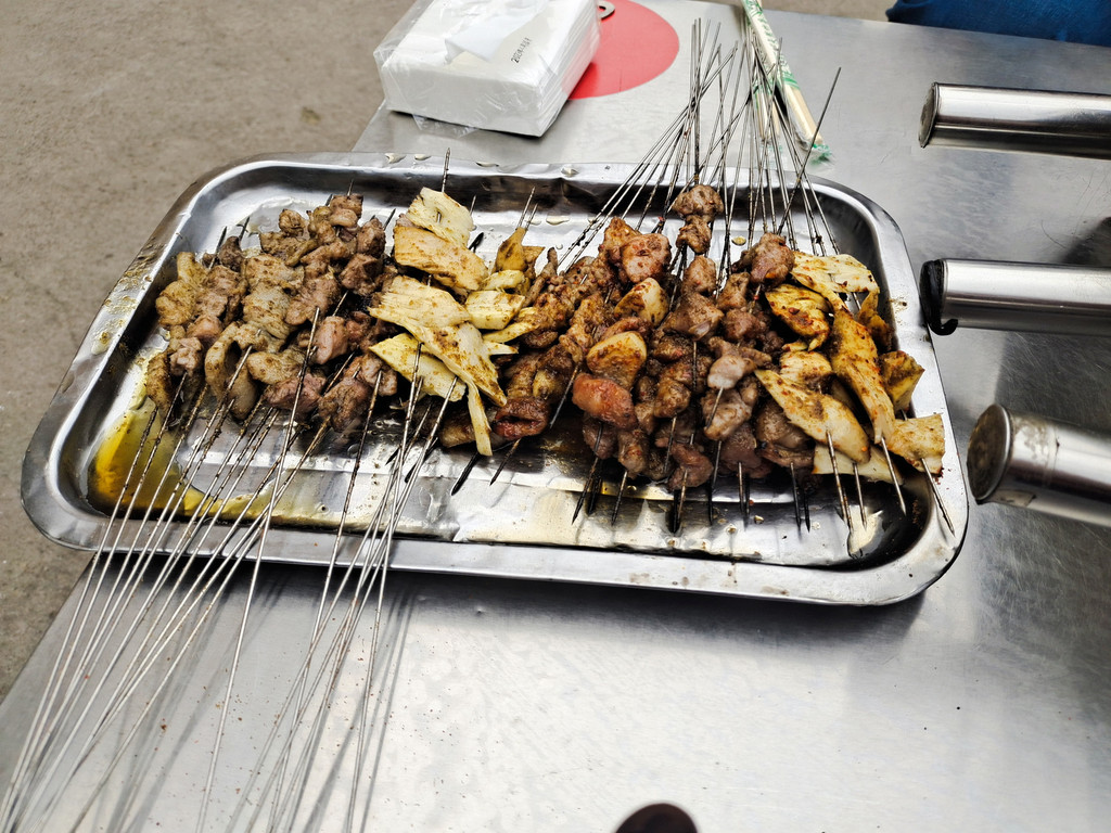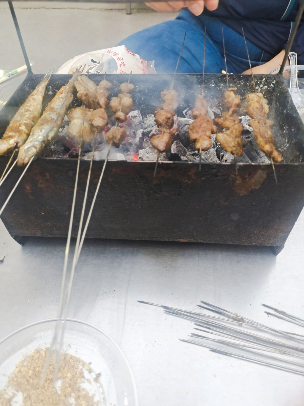 城区不大,我们走着回到酒店。听当地人说淄博(张店)的烧烤都是从博山传过去的,以前的市政府也在博山,博山烧烤最正宗。我们决定就在博山吃当下最火的淄博烧烤,特意在网上搜了一下,附近有一家小公园烧烤,评价还不错,决定去那吃。我们以前吃过一两次,但都是别人点的,第一次自己点, 各种串点了差不多80串,加上小葱、辣酱、小饼和一瓶啤酒,消费140元。感觉串挺小的,也没觉得特别好吃,不知道是我们的期望值太高,还是与淄博烧烤不一样,反正体验感并不是太好,感觉还不如在沂源吃的好。