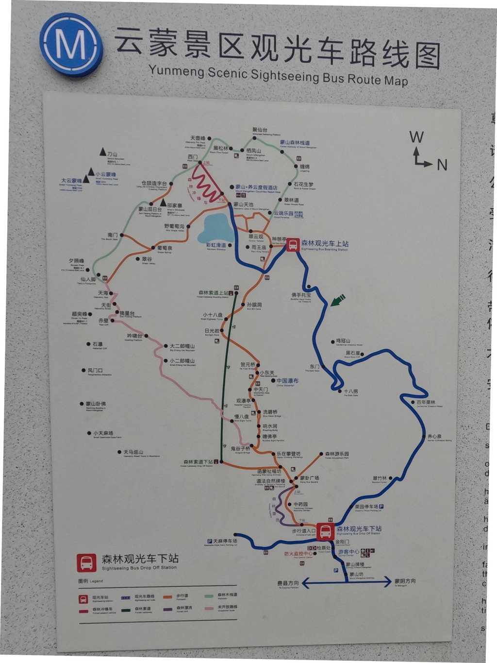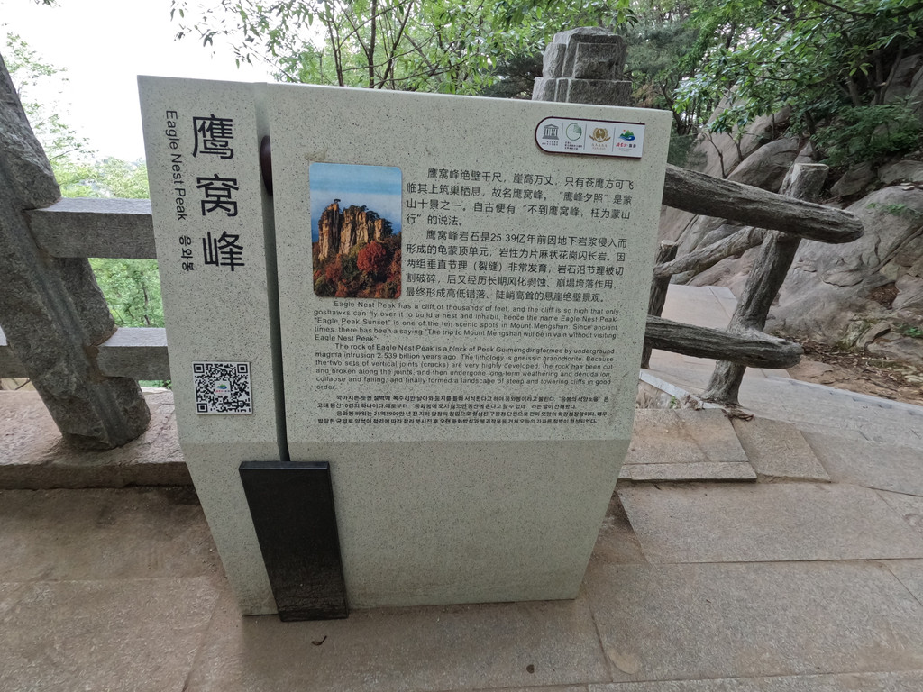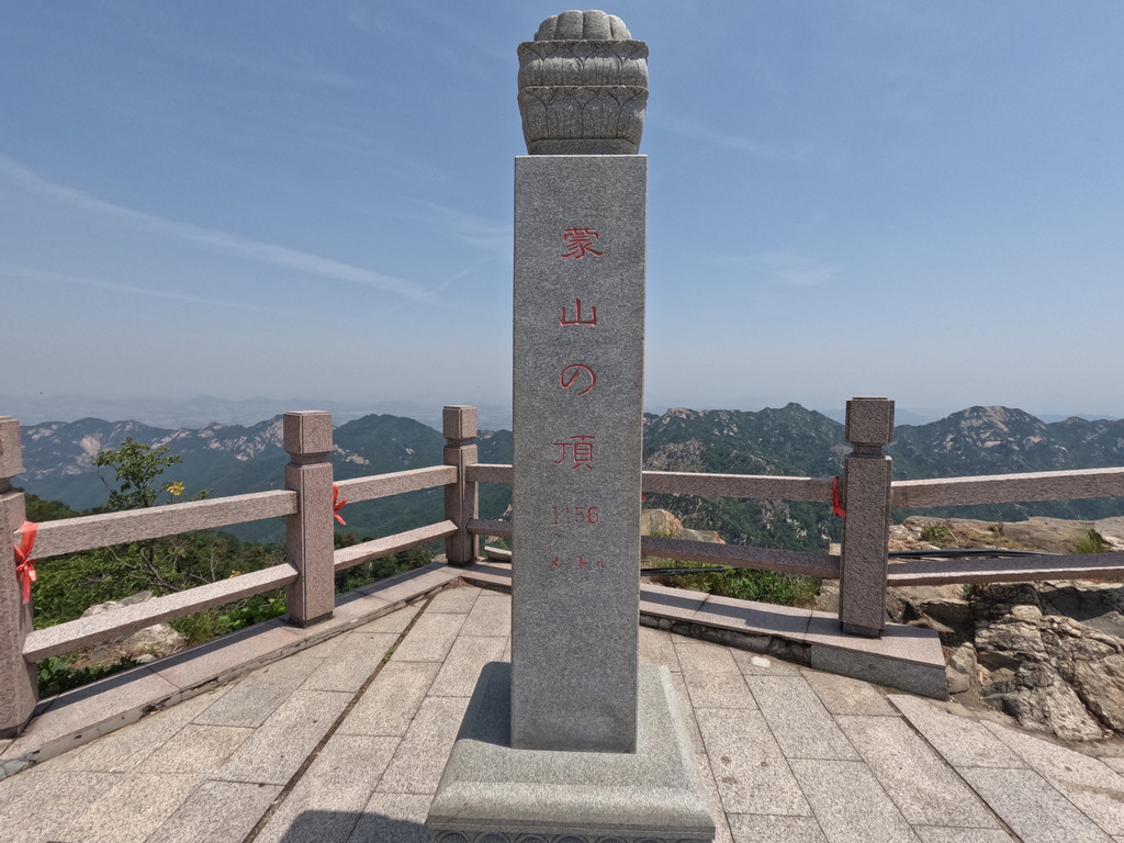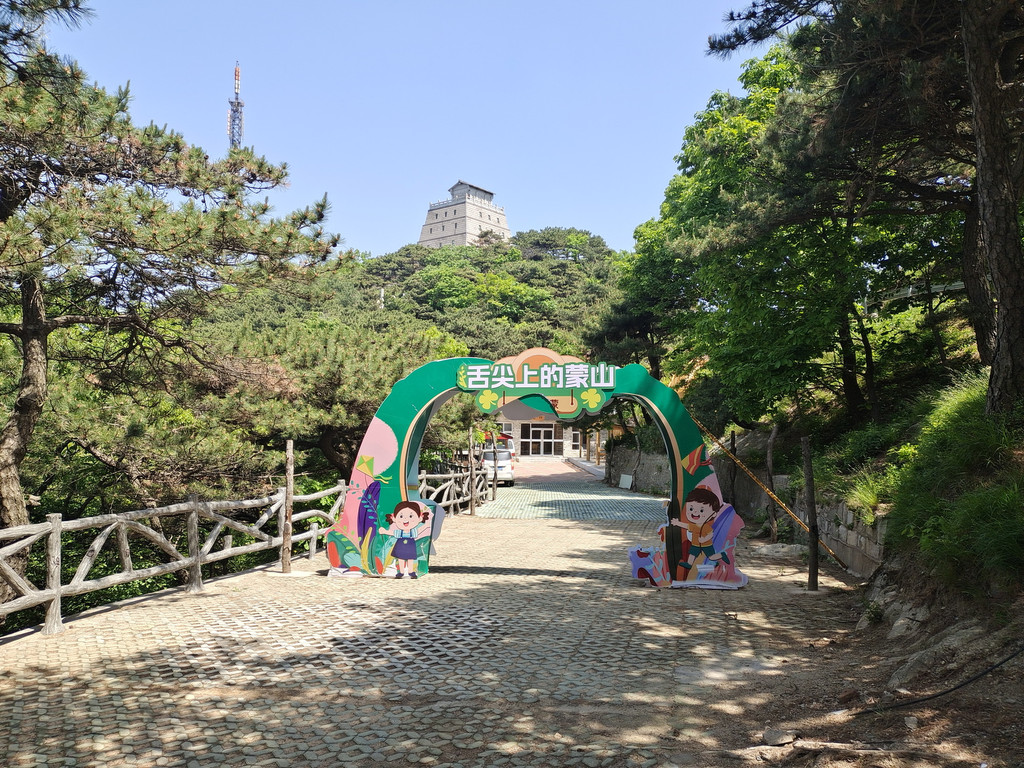 2023年5月23日启程去蒙山。想象中既然是沂蒙山风景区,两山应该隔得不远,实际上两座山隔的很远。蒙山有四个景区,龟蒙(平邑)、云蒙(蒙阴)、天蒙(费县)、彩蒙(沂南)。龟蒙景区是首选景区,龟蒙顶是蒙山的主峰,为山东第二高峰。上午9点半到达蒙山龟蒙景区停车场,游客不是很多。景区票价119元(含摆渡车),网上购票有优惠。景区摆渡车基本开到山顶了,步行20分钟左右就可以登上山顶了。