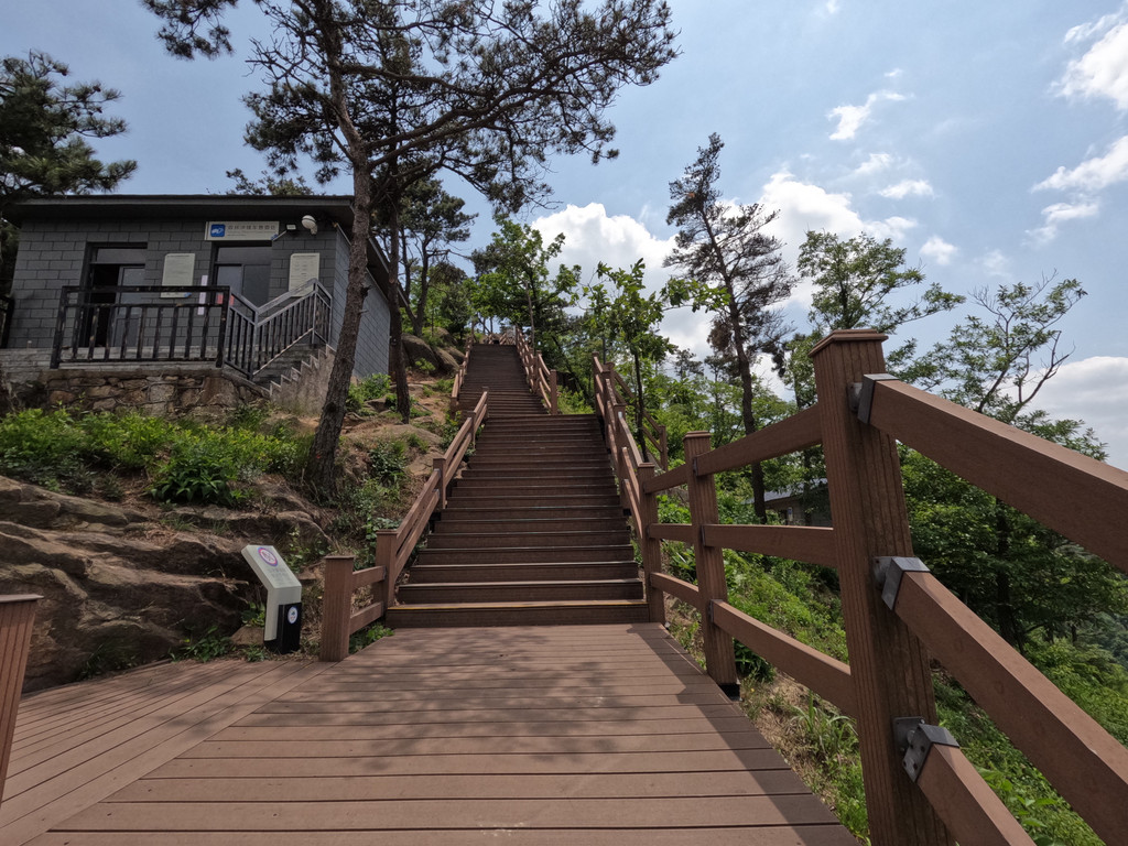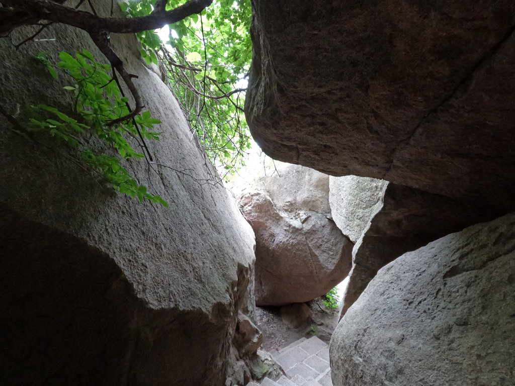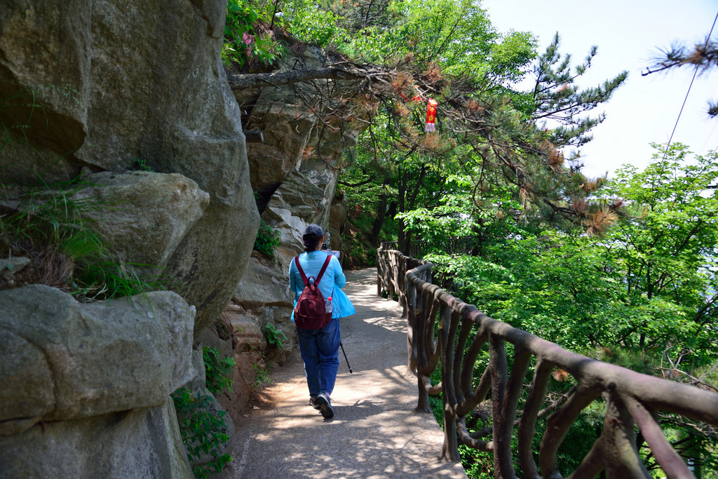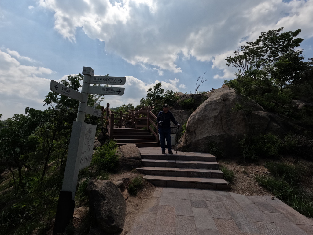 继续向前走,以为要走到夕照峰才能下山,看着眼前的山路还是挺犯愁的,现在是没有退路了,只能向前走,没想到峰回路转,走到南门,有一条下山的路,沿此路下山回到了爬山的起点。