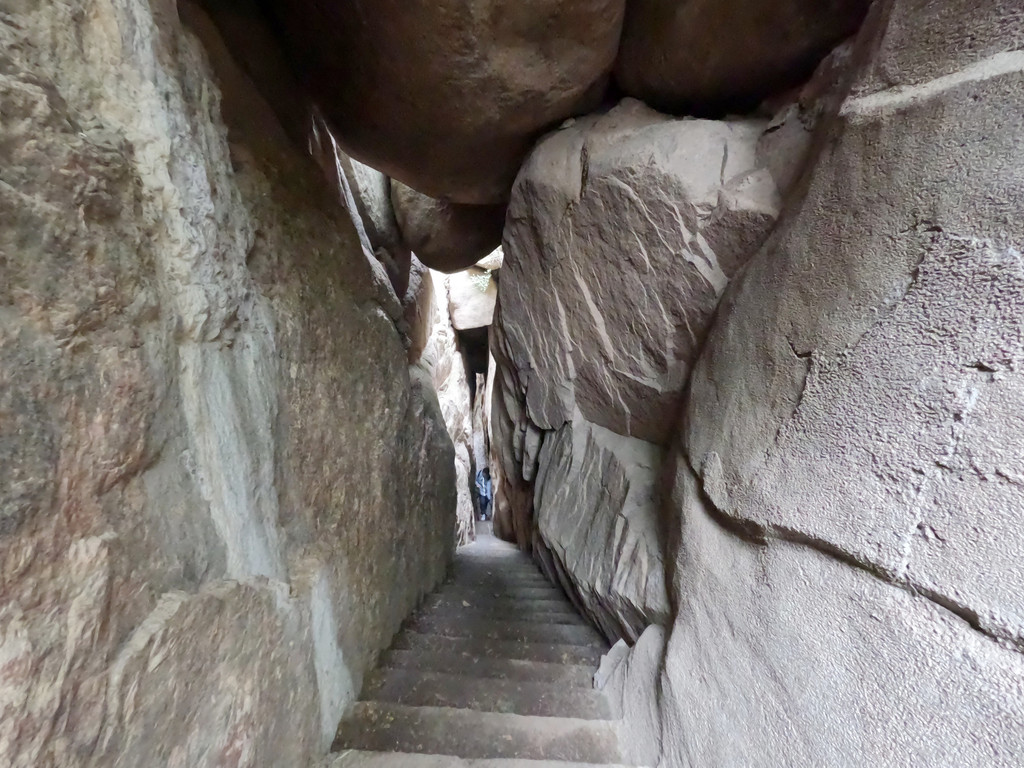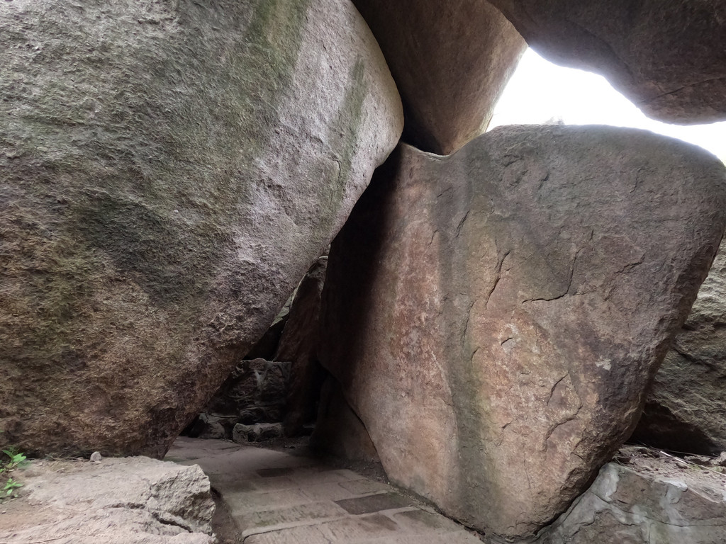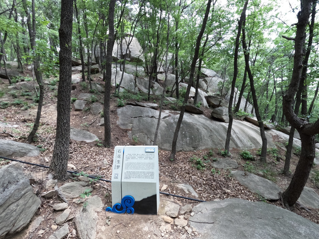 继续向前走来到西门,说实在的,走到这里挺累了,有些游客走到这里或折返或坐森林冲锋车下山。原路折返也要走好长一段路,前面的景点还看不到,坐冲锋车觉得危险不敢坐,问工作人员前面的路好走吗,也没听明白,为了不留遗憾,继续向前走,下一个景点是仓颉造字台。走过才知道,再往前走的路挺难走,主要是上下台阶比较陡,走起来小心翼翼。