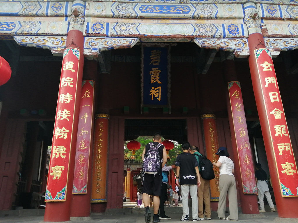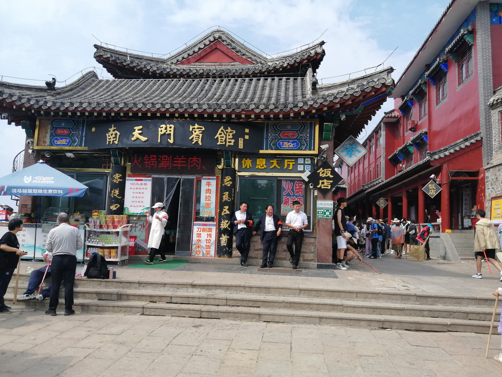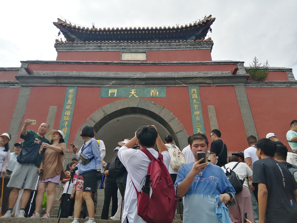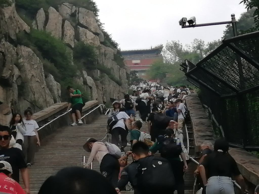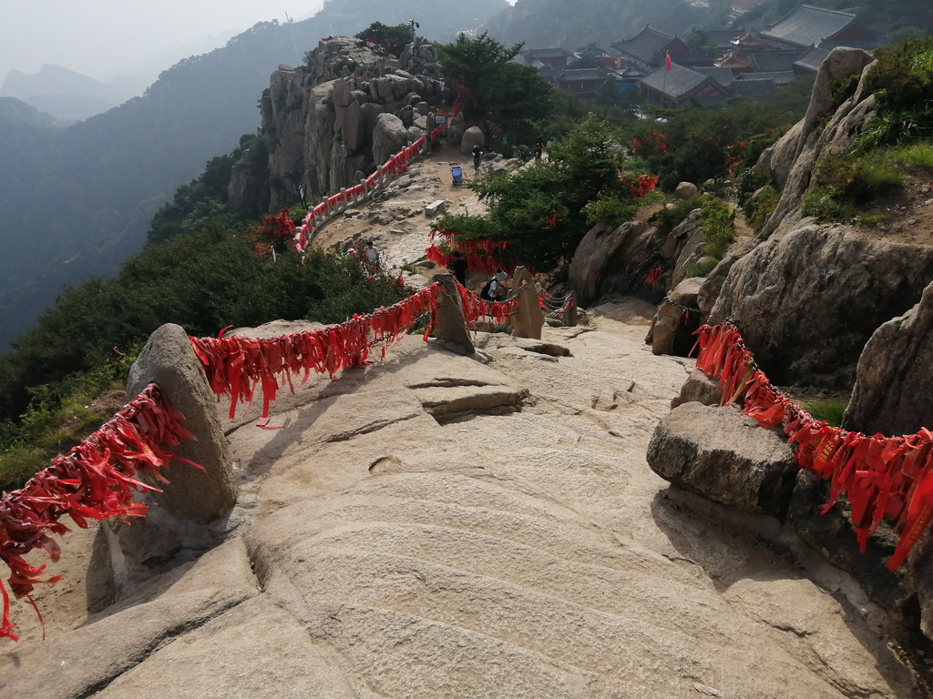 玉皇顶里面就是一个规模不大的道观。此时四点了,听见不少人在互相催促赶紧去坐桃花峪索道下山。过了五点就停运了。去了还要排队等,都怕来不及。看了一眼拍了照就匆匆走了。我想来都来了,总归要好好看看的,待会还是徒步下山吧。