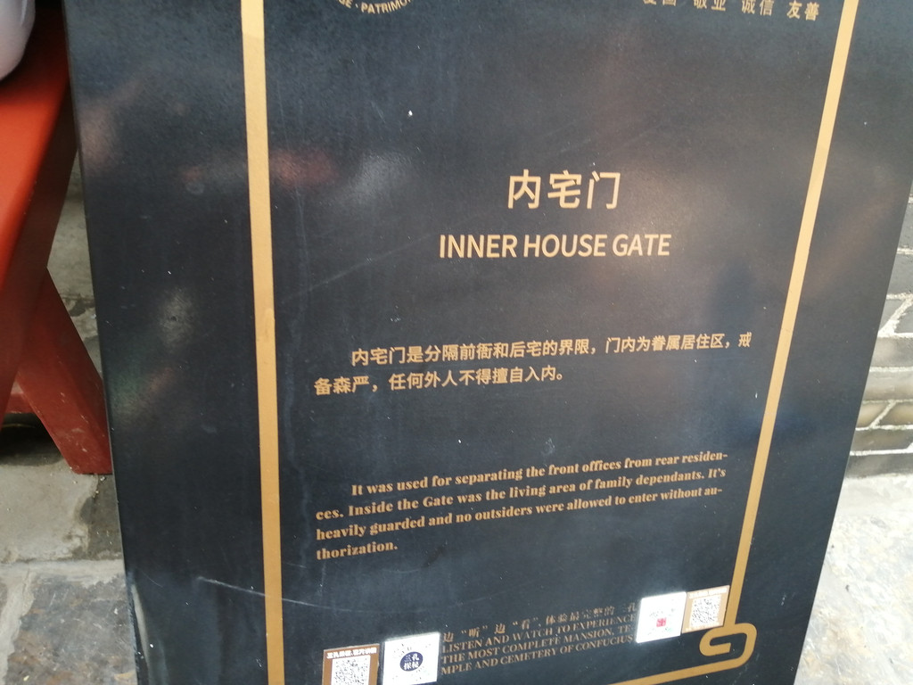 孔庙孔府是连在一起的。穿过万仞宫墙,在金声玉振牌坊这里就是景区入口了。安检很严格,打火机一律门口寄存,出来时再取。严格也是必要的,里面都是木结构建筑。