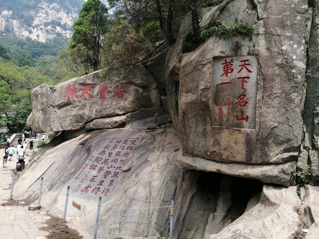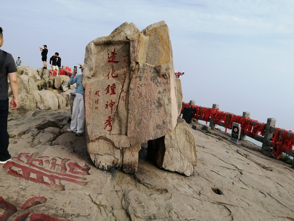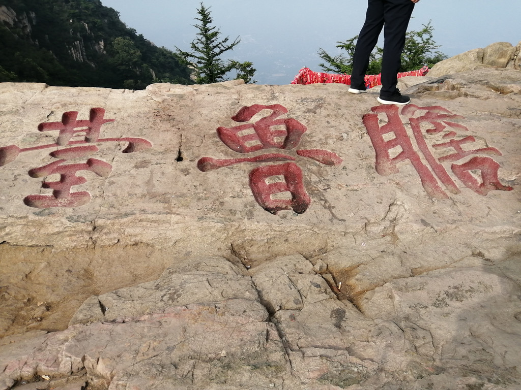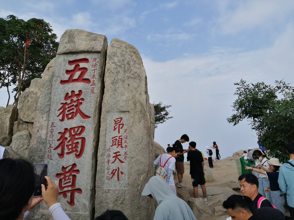 快到玉皇顶的那一段台阶旁边就是五岳独尊的石刻。这会拍照的人还不算太多,赶紧拍。来泰山这里是必到的打卡点。