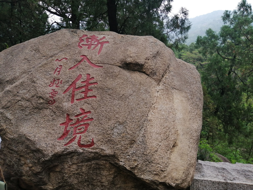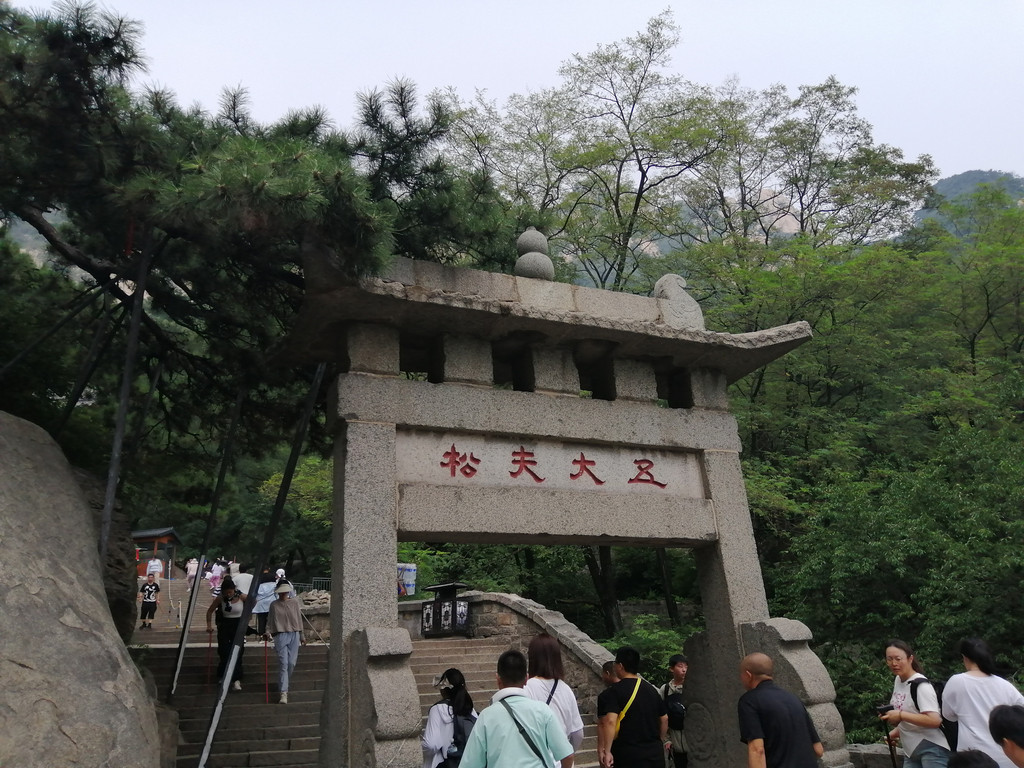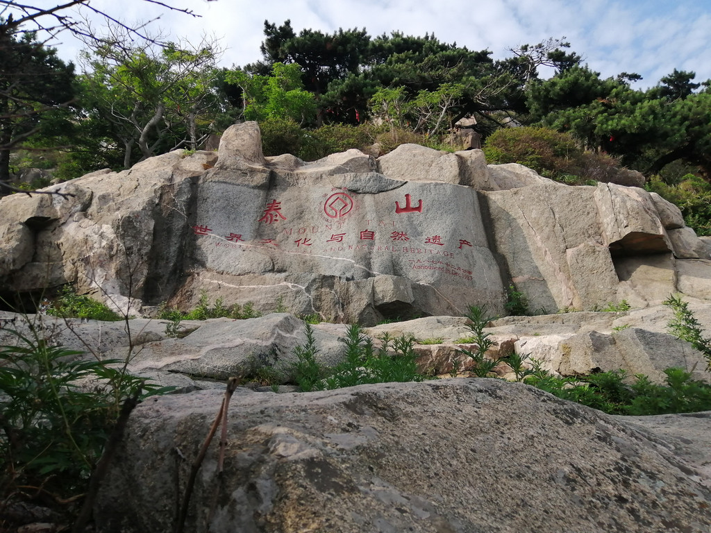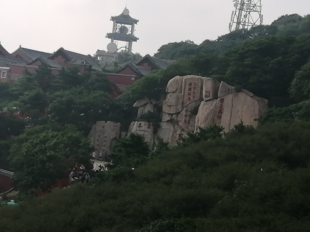 快到玉皇顶的那一段台阶旁边就是五岳独尊的石刻。这会拍照的人还不算太多,赶紧拍。来泰山这里是必到的打卡点。