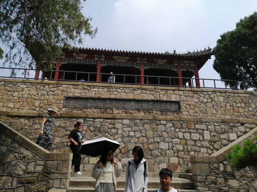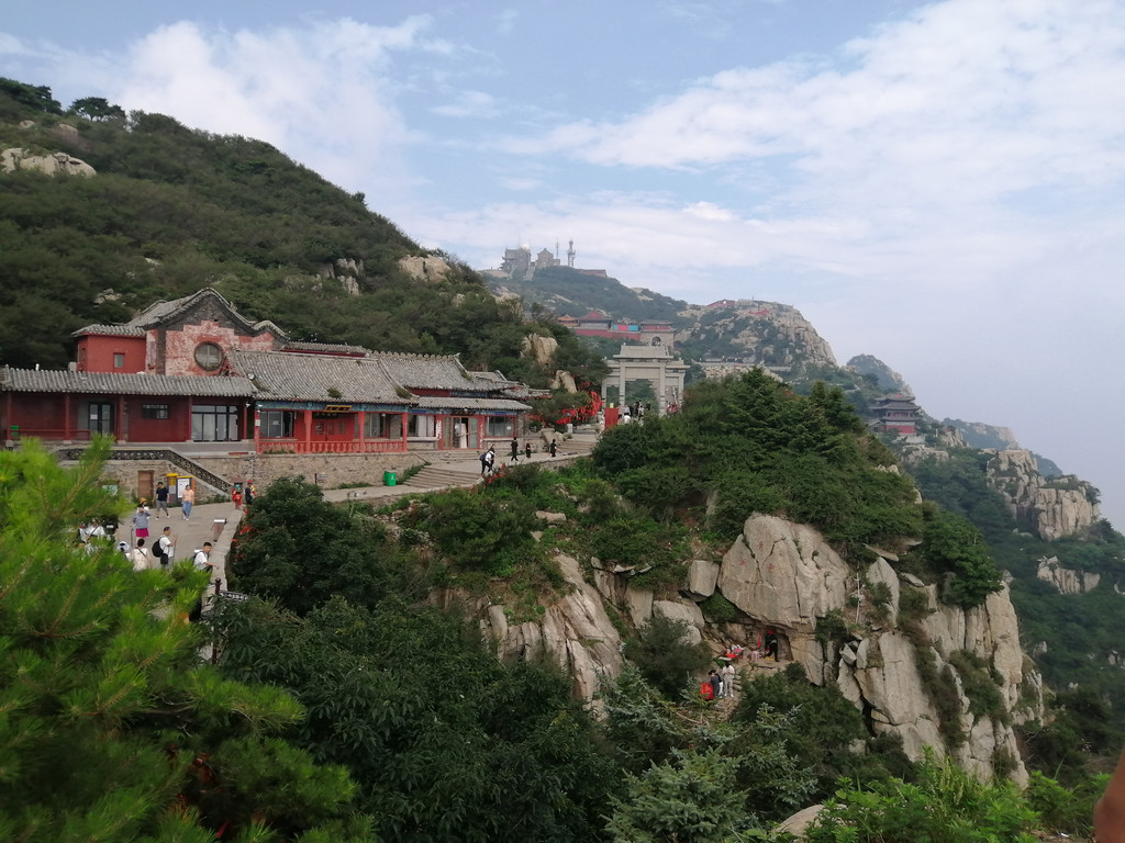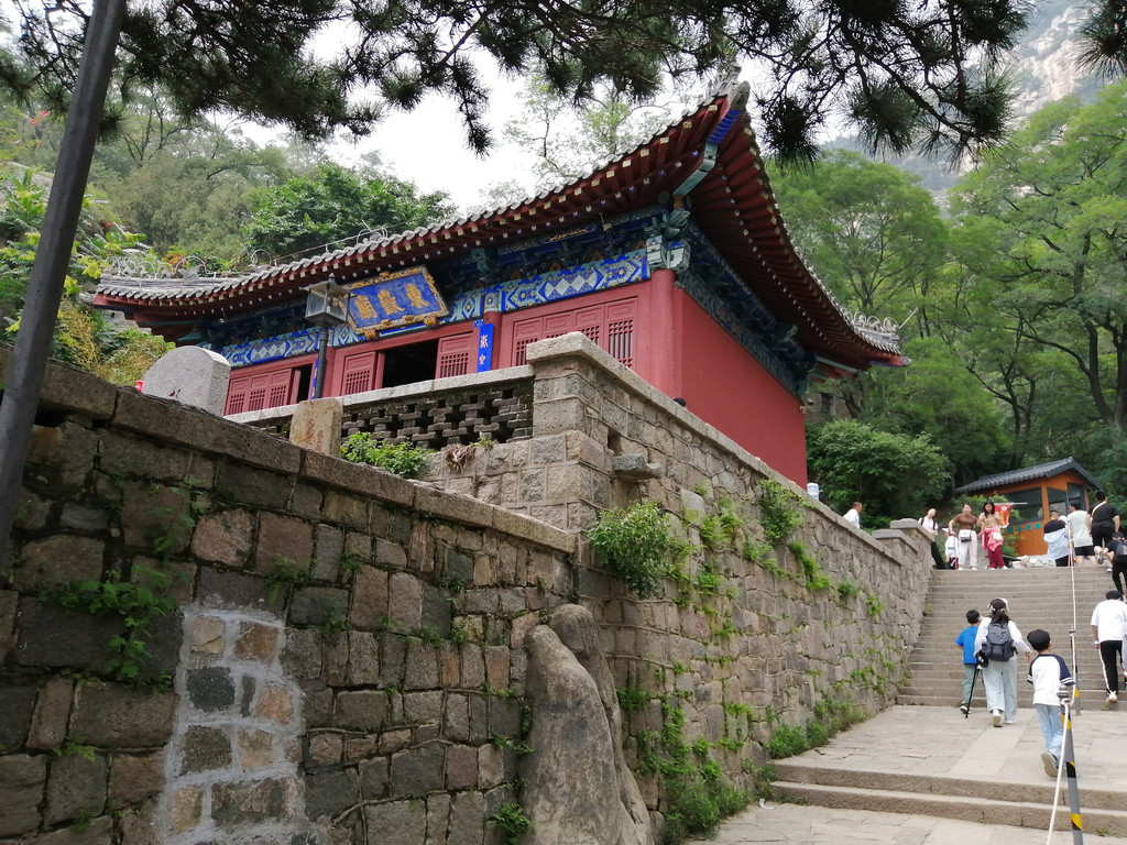 往前走有个分道口。继续往前上台阶去往碧霞祠,瞻鲁台。往左上台阶上去是孔子庙,青帝宫,玉皇顶。反正不管从两个方向哪里上去,这几个景点都能到达。