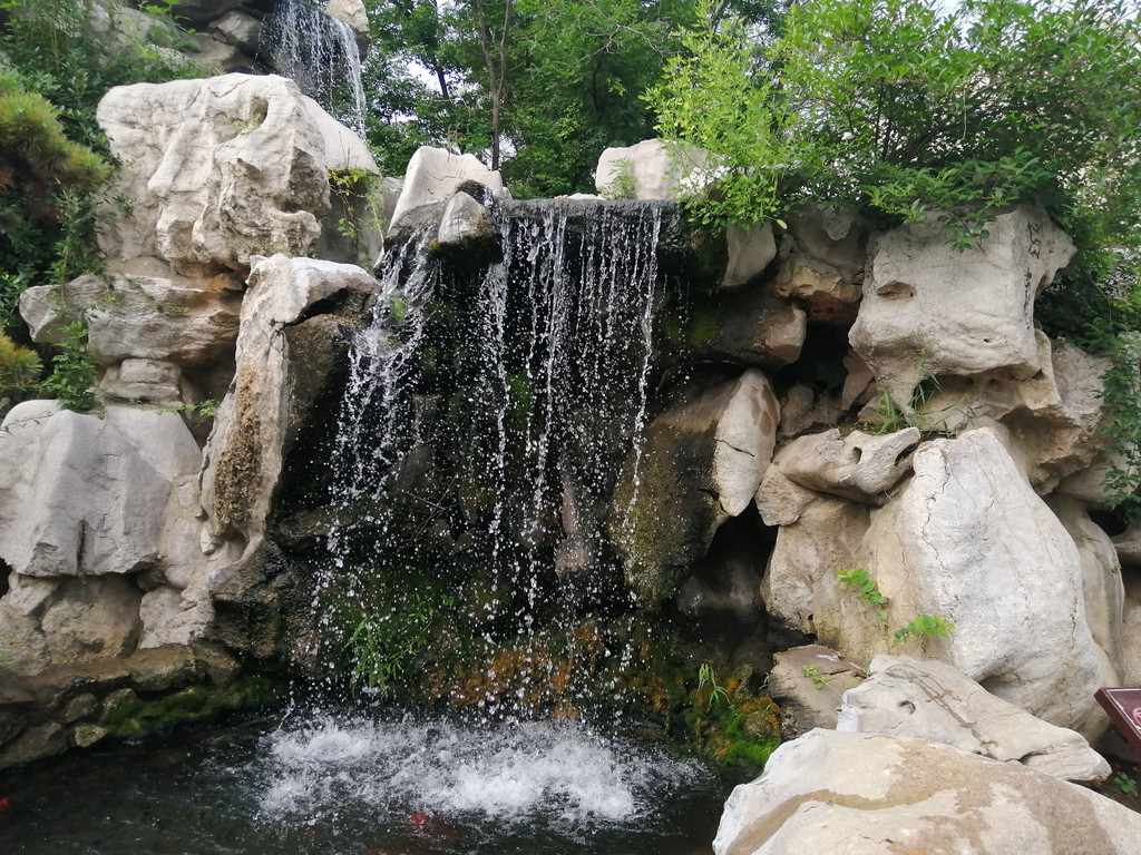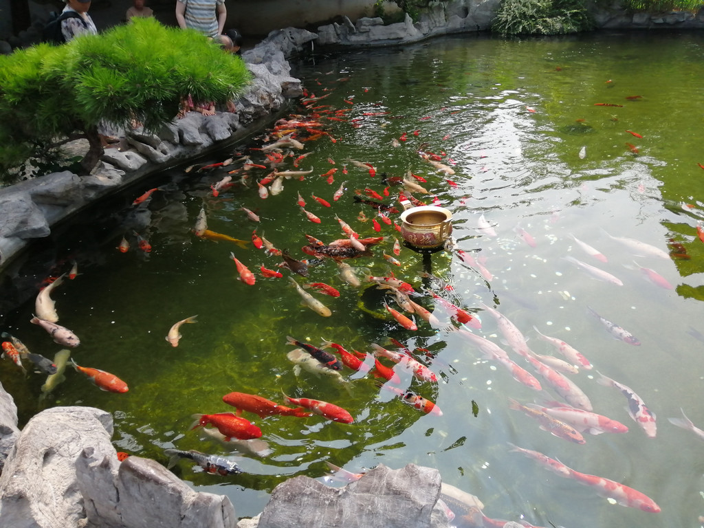 后花园池塘里的锦鲤鱼。老婆和儿子买了鱼食,在这里喂鱼。