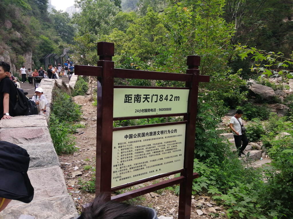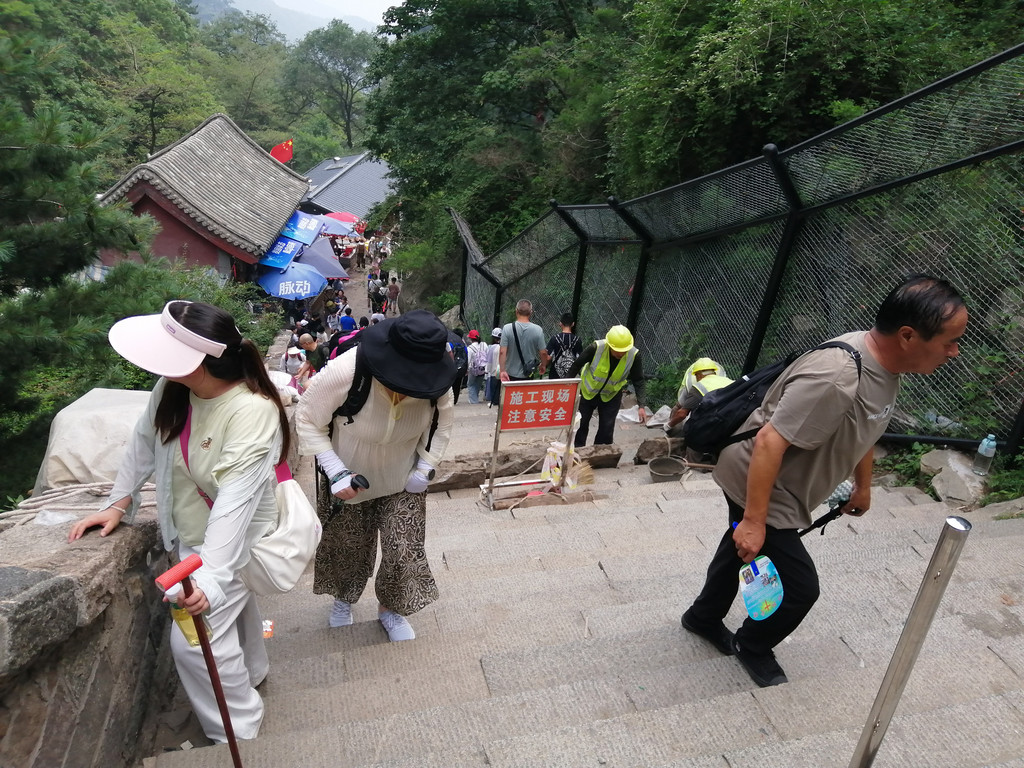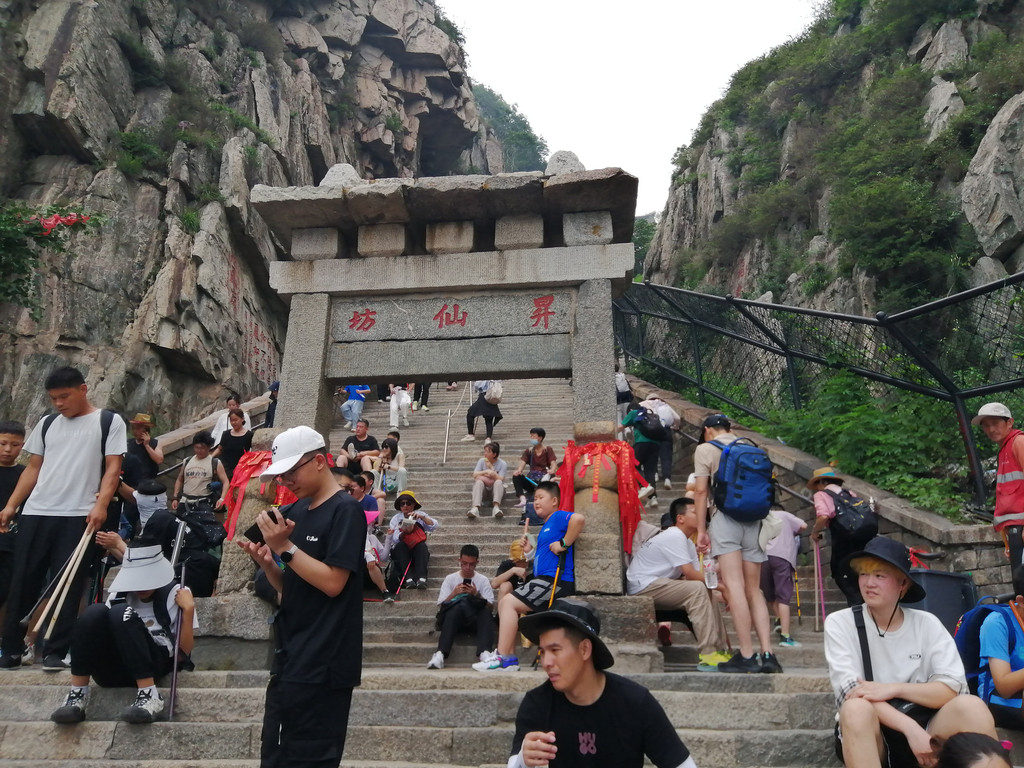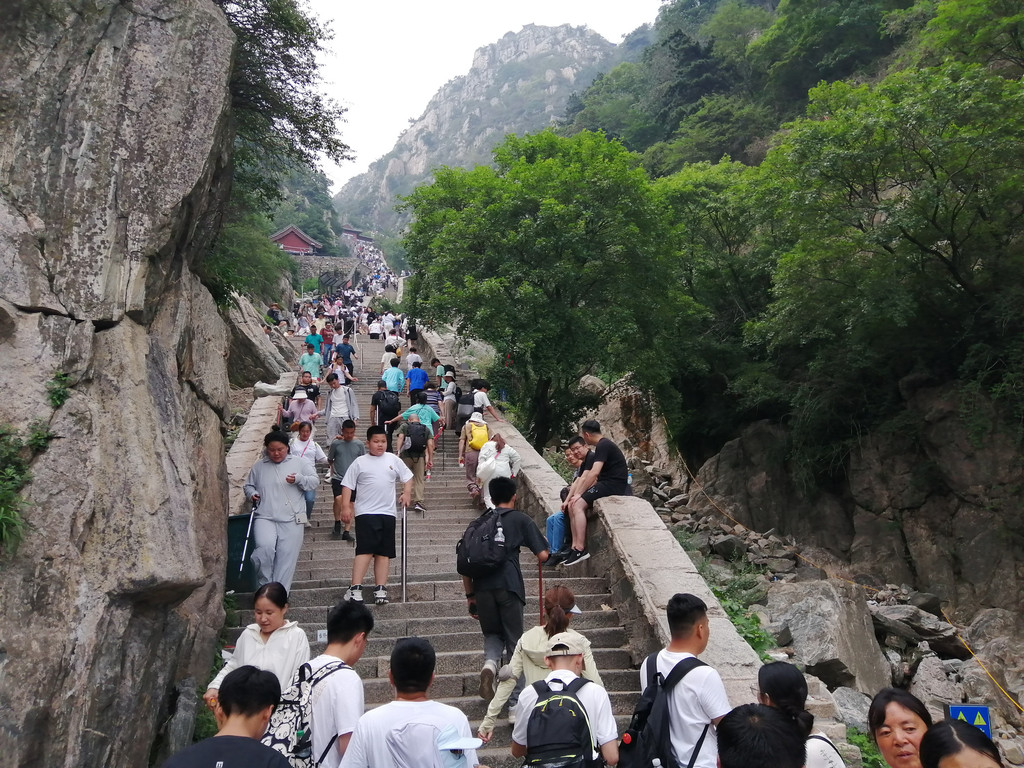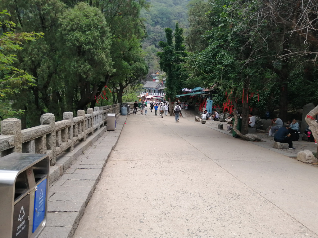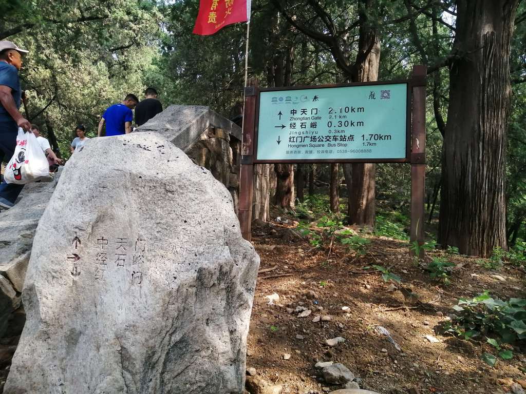 到中天门的上半程道路相对比较平缓。但是三十度左右的天气,对于会出汗的我已经是满头大汗了。旁边两位东北口音的小伙子对我说:大哥这才刚开始,你就热成这样了,后面咋整。我说我也就是会出汗而已,其实我并不热。