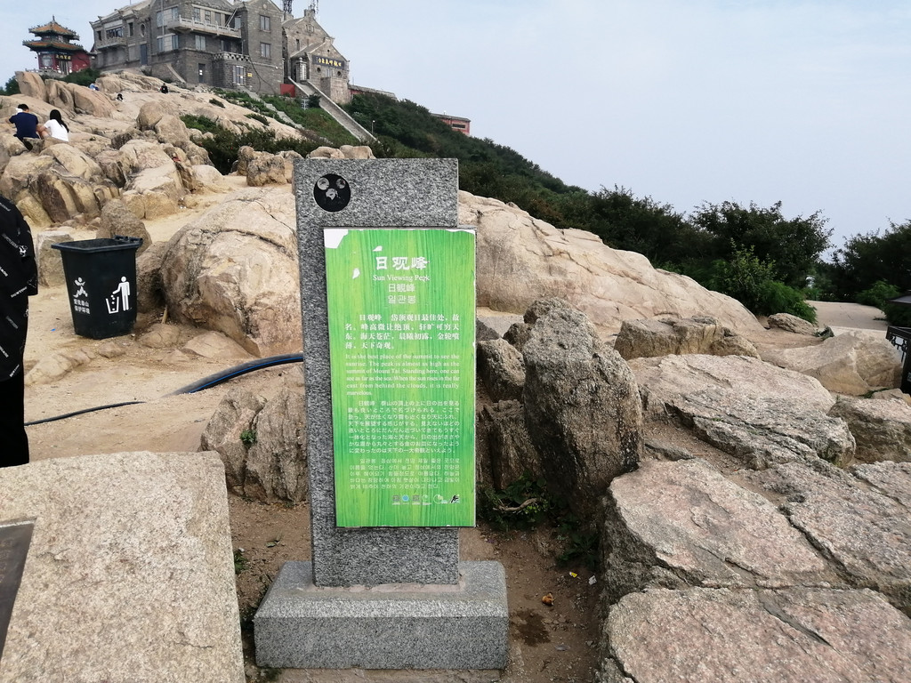 这里是泰山最高点。立了块泰山极顶1545米石碑。