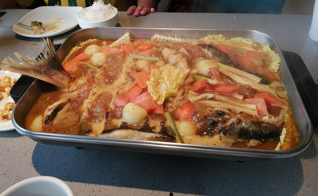 本来想看万仞宫墙门口的关城门仪式表演。一问要五点半开始,这会才五点。不高兴等了,去吃晚饭。曲阜这里感觉吃的不太多,沿途经过好几家饭店。看到这里的特色孔府三样菜,炸豆腐,酥肉等等。老婆和儿子都表示不想吃。最后去五福广场转了一圈,除了肯德基必胜客也没啥吃的。看来看去还是吃烤鱼吧。