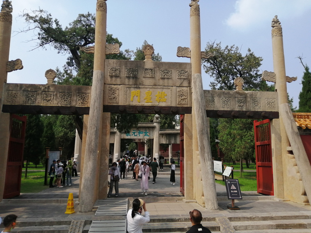 里面不大出来就是牌坊了。售票处就在城门西侧。以前可以凭泰山门票免费游玩岱庙。但从今年六月一日开始不行了。门票20。买了两张票老婆20儿子10 ,我凭优待证免票。