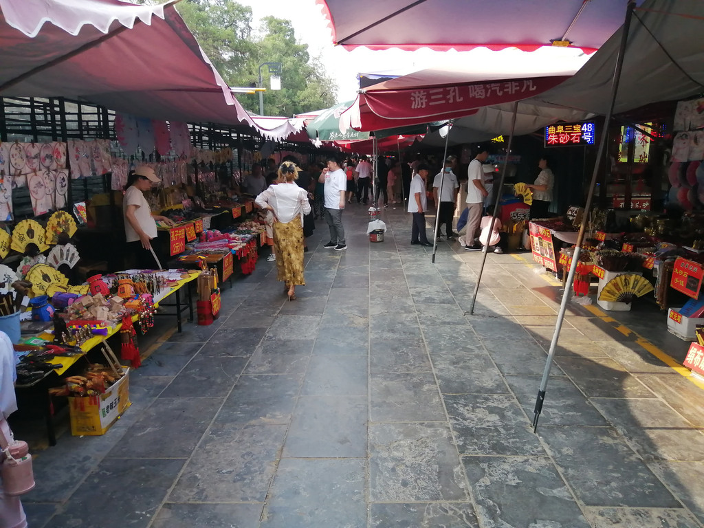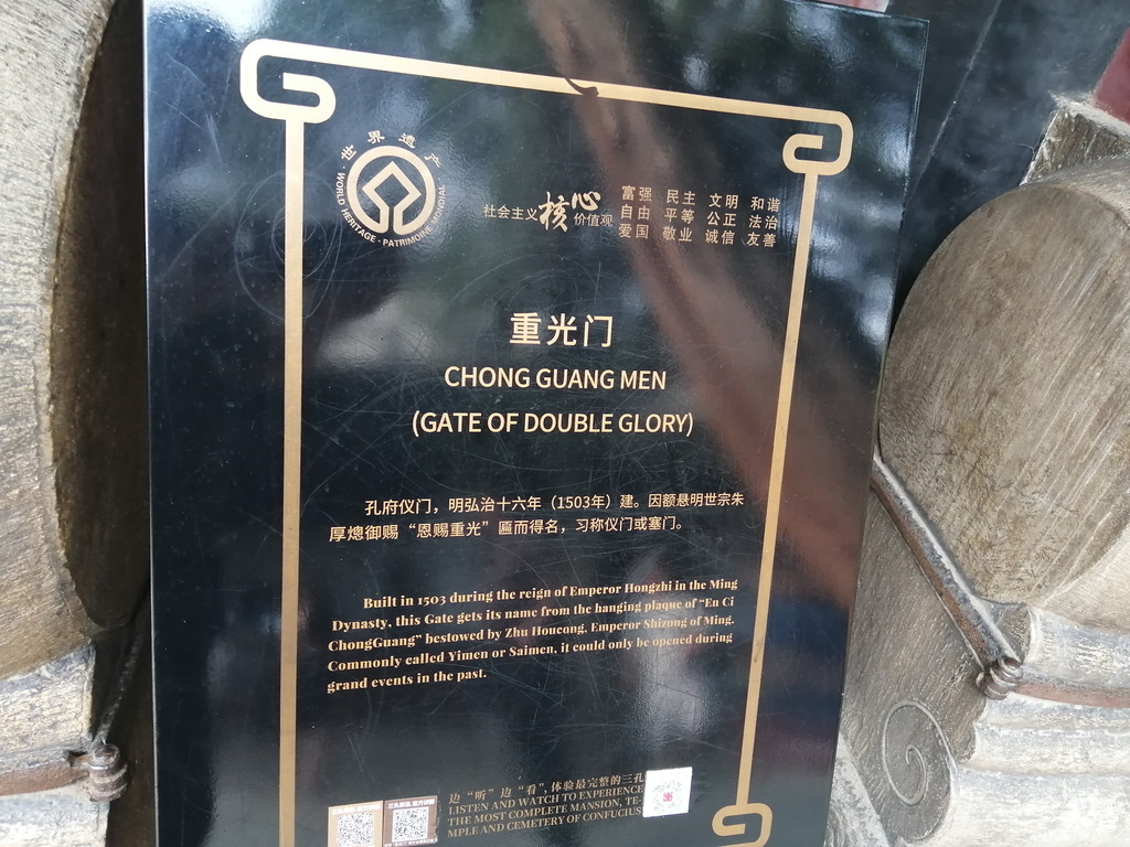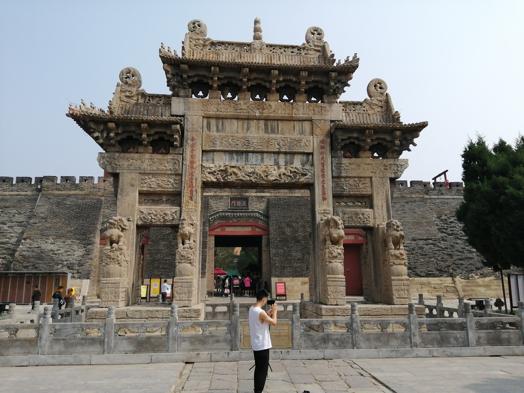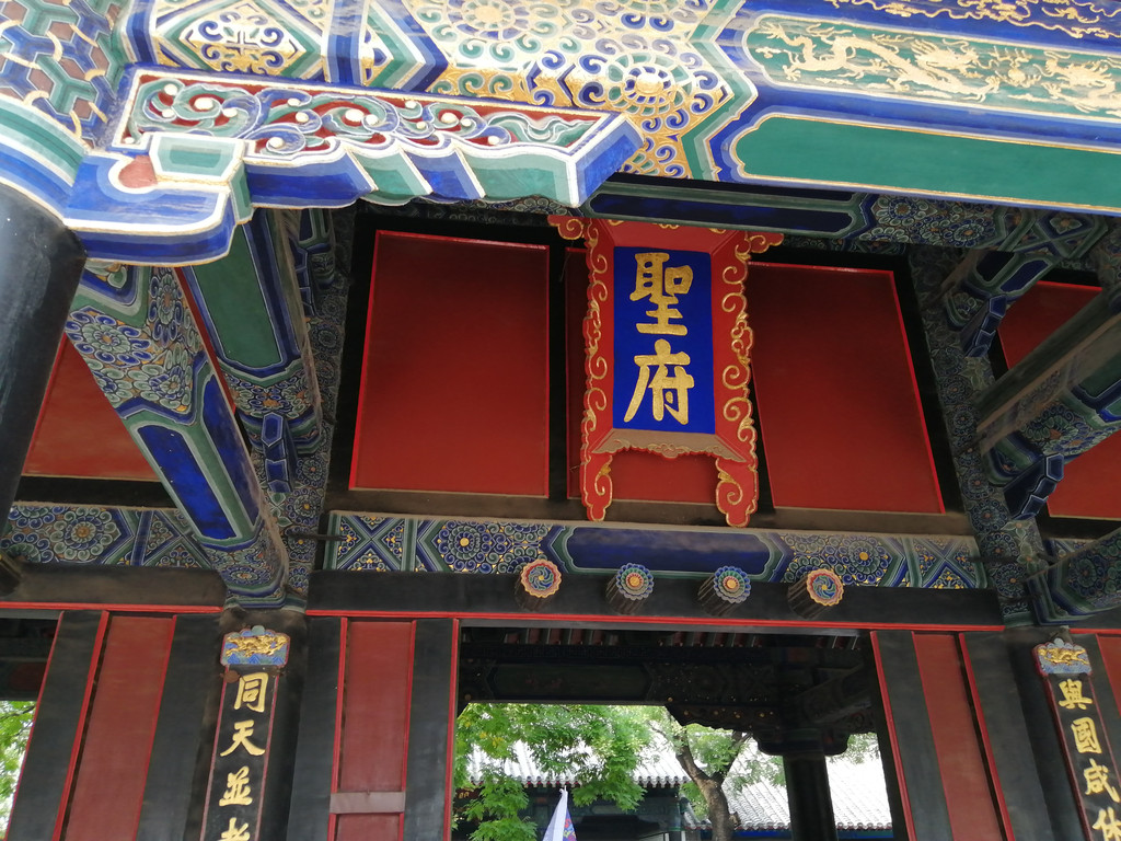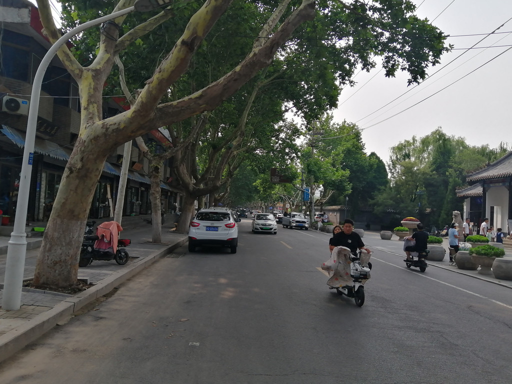 一位大姐过来让我们坐她的电动三轮。她给我们看电三轮是有景区营运证的,我们就上车了。大姐顺着老城区由北到南开,沿途正好看看老城区几个牌坊街。最后回到万仞宫墙这里。付她10块钱车费。感觉挺不错的,价格合理,大姐也热情周到,一直开到万仞宫墙这里。打车的话是开不到万仞宫墙门口的。要是从孔府北门步行回到这里要2.5公里。