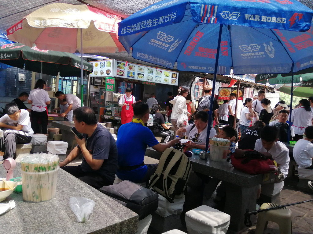在这里吃午饭。这里西瓜是称重卖的,五片西瓜17块。再加两碗牛肉面,一碗西红柿鸡蛋面连西瓜一共87 背包里带的水也喝差不多了。在这里10块钱买了4瓶。
