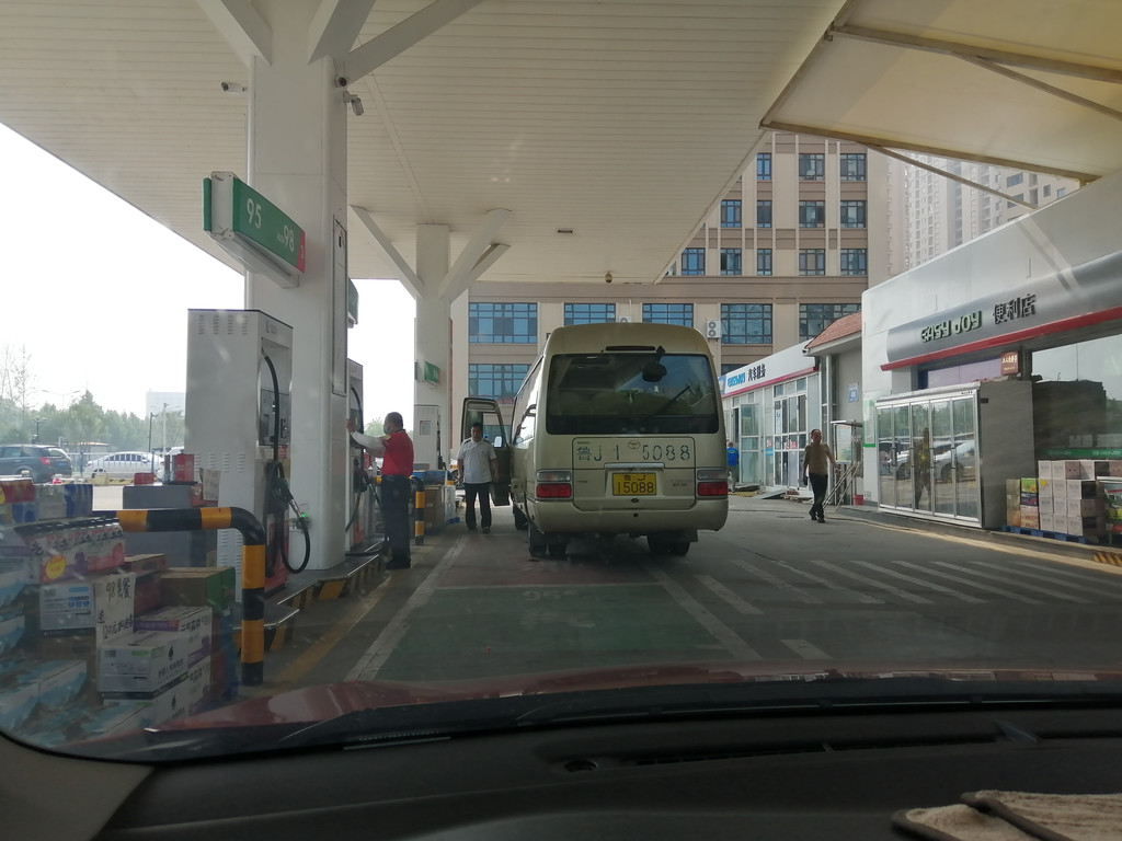 宝应范水服务区吃午饭。这里已经是小雨了。和之前往北走一样,在这里加满油。这里是京沪高速江苏段往北方向,无铅汽油的最后一站。再往前就是淮安地界了。那里都是乙醇汽油。