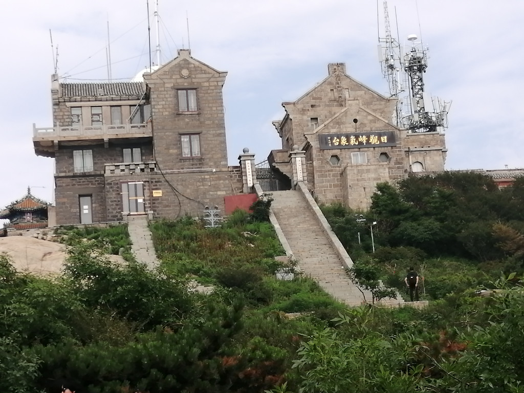 日观峰气象台旁边那座亭子阁楼建筑就是日观峰宾馆。