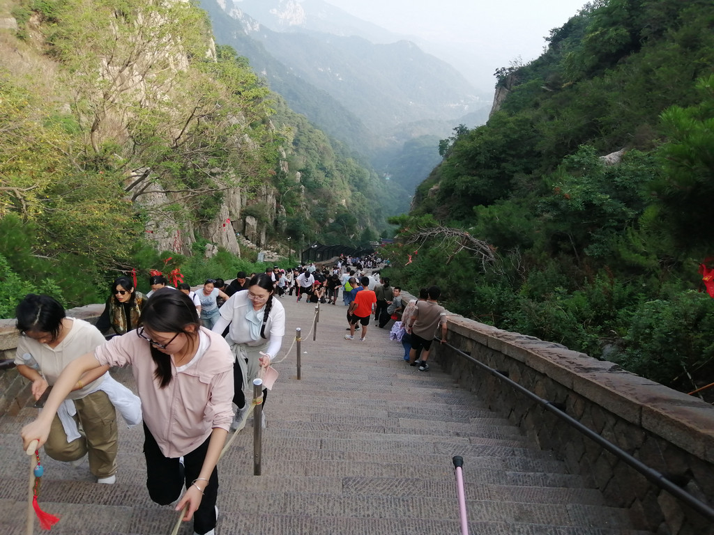 昨天爬泰山三万七千多步。今天又走了两万两千多步。