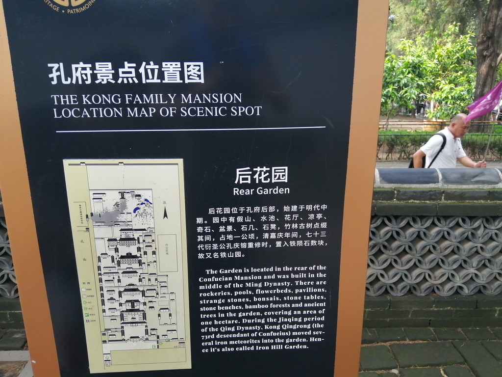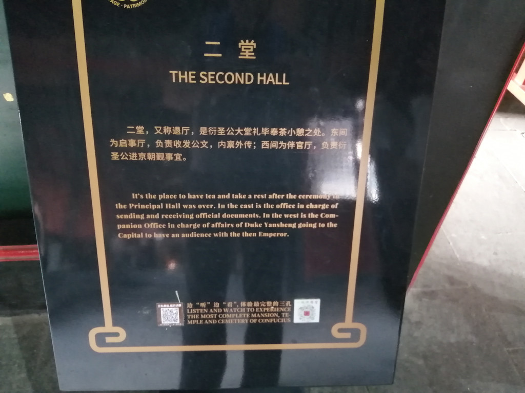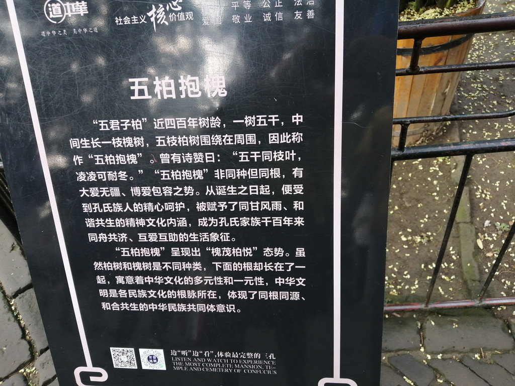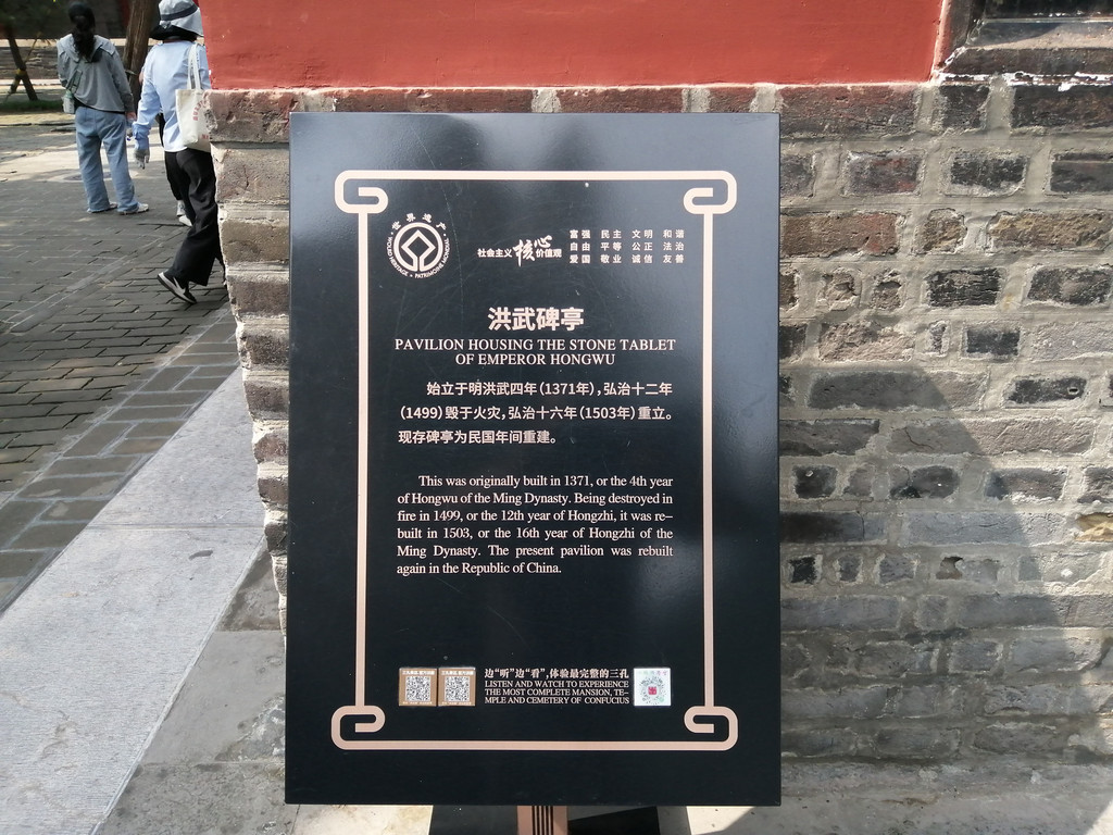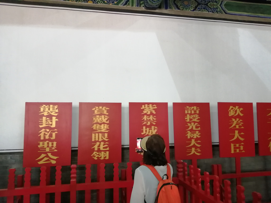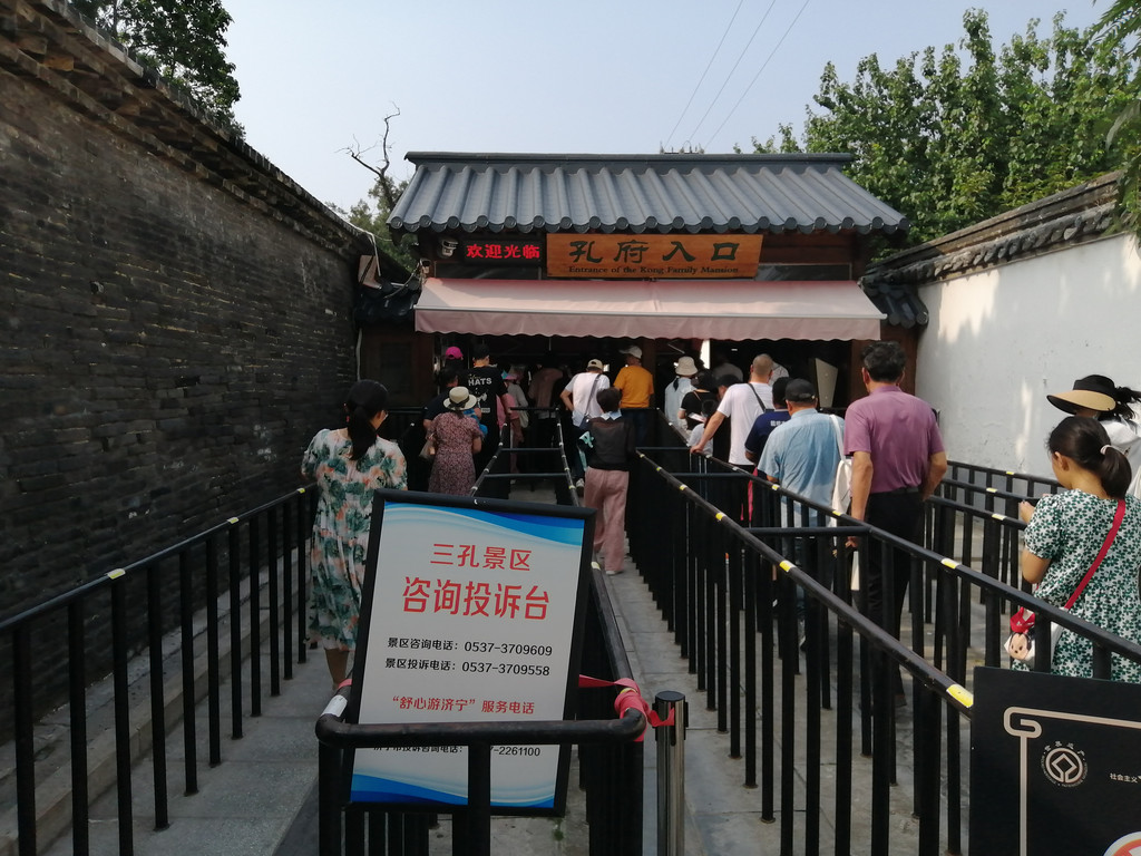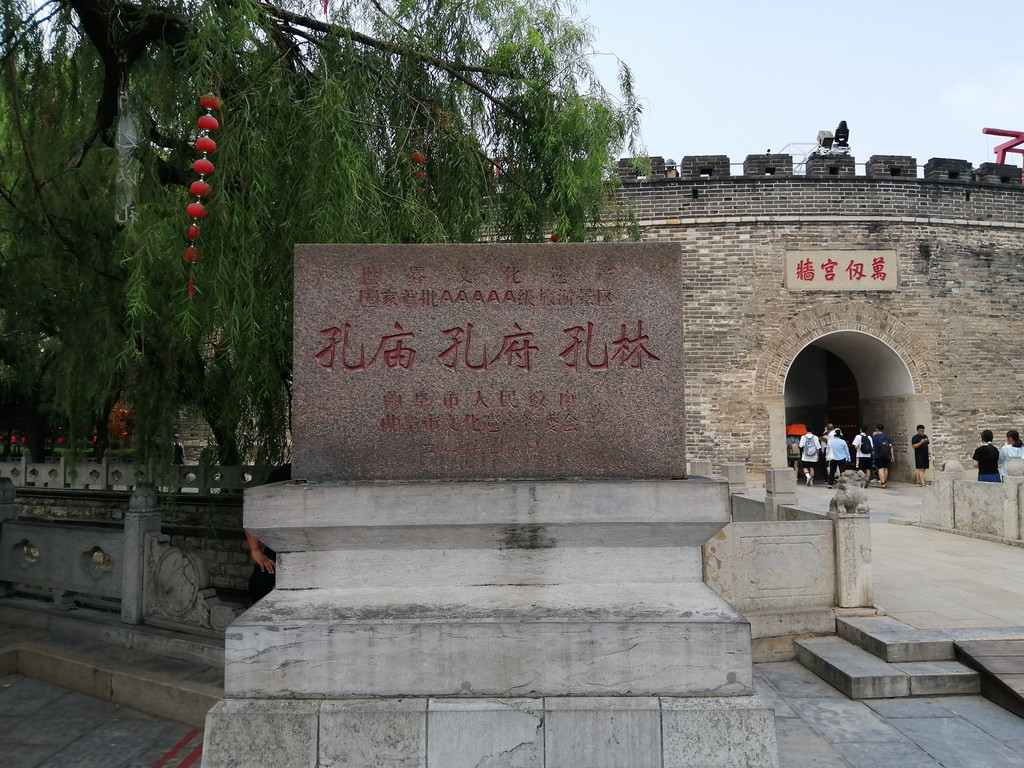 酒店放好行李。走过去十分钟就是景区正门万仞宫墙。万仞宫墙对面神道路东侧就是游客中心,在那里买票(在这里有不少人会兜售门票,一定要去旁边的游客中心买票)。我凭优待证免票。老婆全票140 大老爷70 (门票包括孔庙 孔府 孔林)