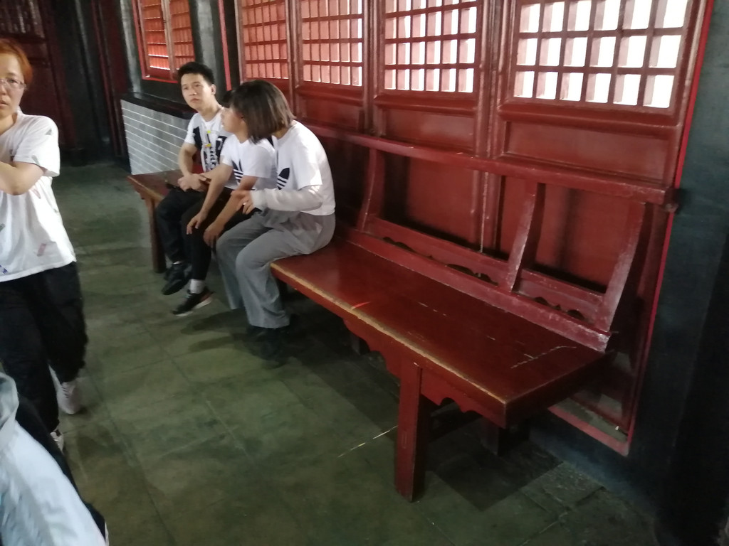 进去就是洗砚池。大老爷在门口八块钱买了根像小拖把一样的大毛笔,在这里蘸水地上写字。