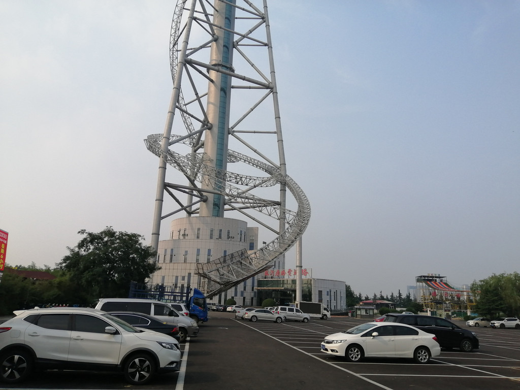 故居出来,过三河隧道。到了临沂电视塔。里面停车场挺大的。停好车去对面沂河边看看。