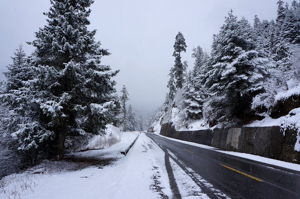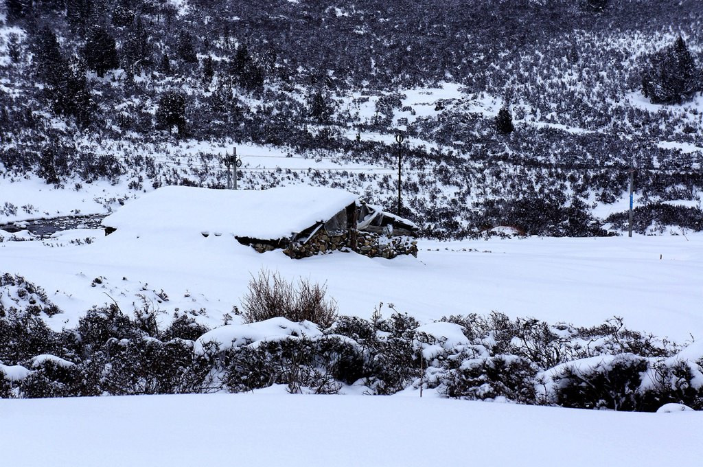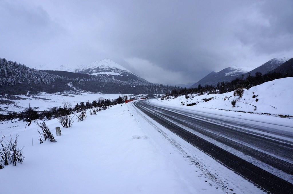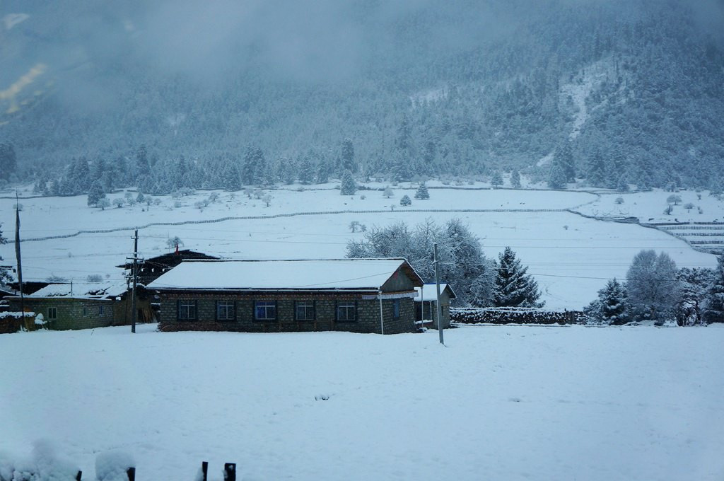 今天的行程原本是要先到桃花村的,邢师傅说回程再去吧,就匆匆往波密赶。不过我们后来就明白为什么那么急了。早上从八一出发时天还是有点阴,一路往色季拉山走天空由下小雨-下小雪-下大雪,经过鲁朗时还能看到路,到了色季拉山上已经只看到白茫茫的一片,连路也看不清了,更不要说看南迦巴瓦峰了。
