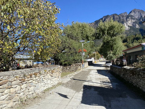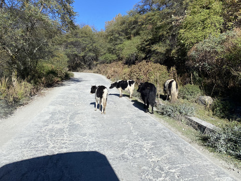 经过洛巴村,除了几只牛大咧咧漫步于村头之外,街道上空无一人。