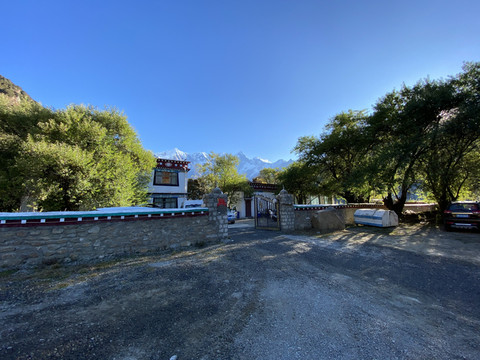 下午18点57分,除了南迦巴瓦峰巨大的三角形尖顶还泛着落日余晖外,一切景观恢复常态,索松山居客栈大院内也安静下来。