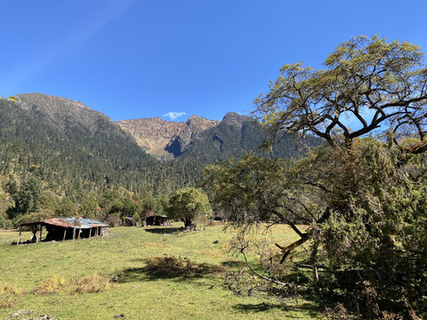 中午12点钟,交通车到达天边牧场,司机指着牧场后方的山说,山梁那边就是麦克马洪线,大家都没吭声,没想到国境线竟然这么近。