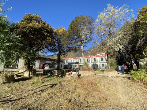 晚饭后,漫步院内小径,星空晴朗,南迦巴瓦冰峰雪山一片明亮,衬出夜空无垠的深蓝。黑黢黢的大峡谷内孤独的现出几颗村灯,唯有脚下的雅鲁藏布江仍旧在不知疲倦的咆哮不停。