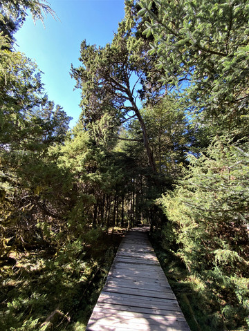 原始森林内的树木多为云杉与落叶松,高大的树干密集的排列在木栈道两旁,潮湿的空气中弥漫着一股松脂的清香味,令人当下即可感受到负离子沁人心脾的拥抱。
