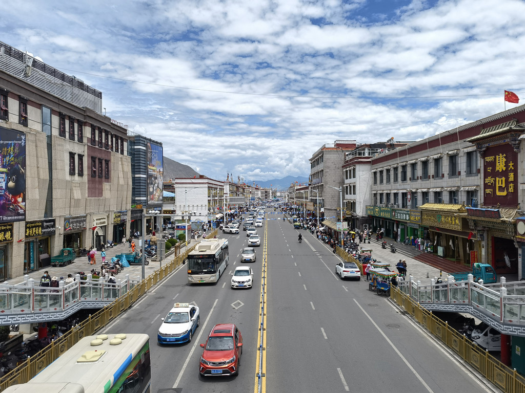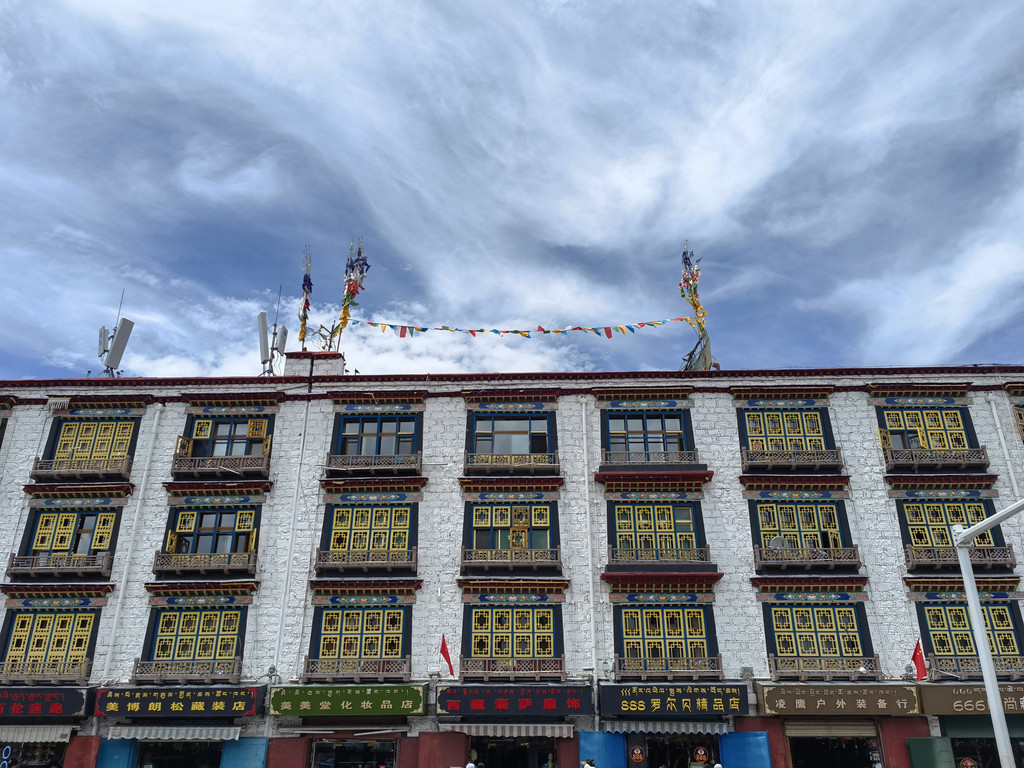大昭寺是一座藏传佛教寺院,是松赞干布建造,至今大约有1300多年的历史,是西藏现存最辉煌的吐蕃时期的建筑。大昭寺外围的街道叫“八廓街”现在商业气息浓郁,相当于具有当地建筑风格的古镇老街