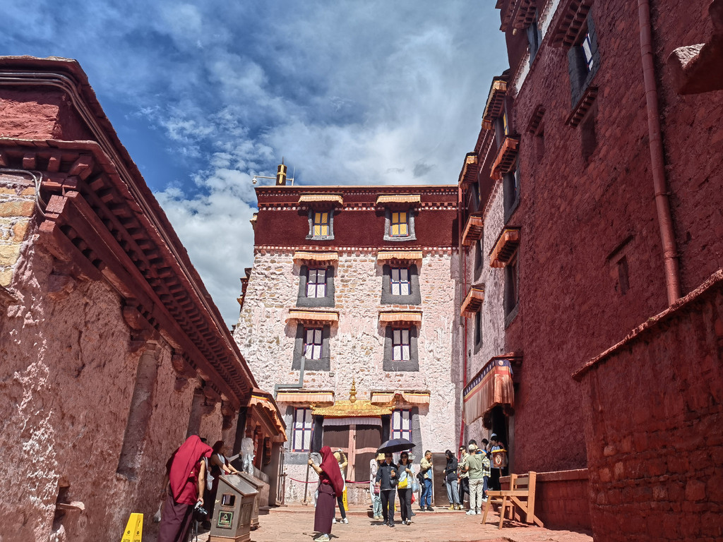 由于布宫造在山上,借着山势,高大约200米左右。从海拔3650开始,爬山是一种全新的体验。走得很慢,体力消耗却很快,不要勉强,勉强就容易高反头疼头晕胸闷什么的。我走第一段阶梯头晕,停下来喝点葡萄糖,缓缓,后面就没事了。登布宫的人很多,走走停停,时刻在排队。走完外围的阶梯,继续走里面的阶梯,里面不能拍照,而且参观当天可以看到哪些殿,也是缘分。