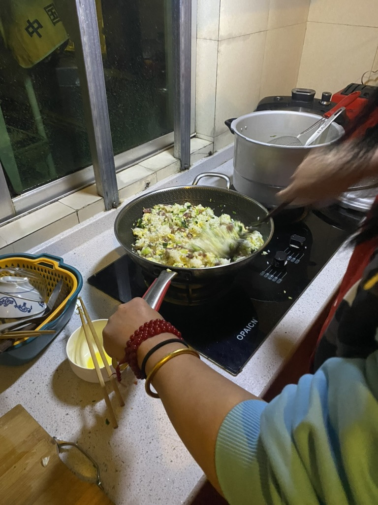 英姐在炒饭给我们吃,对了,与我们一同去看桃花的还有一位大专刚毕业的小姑娘,我们三人一起吃了炒饭。