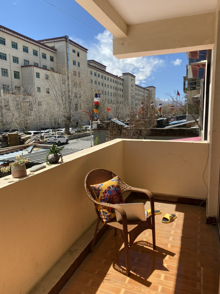 我订是的小房间,由于淡季,有空房,英姐看我要上班,就调了一间大房给我。早上太阳刚好晒到阳台,懒洋洋的边晒太阳边敲代码也别样的一种享受。