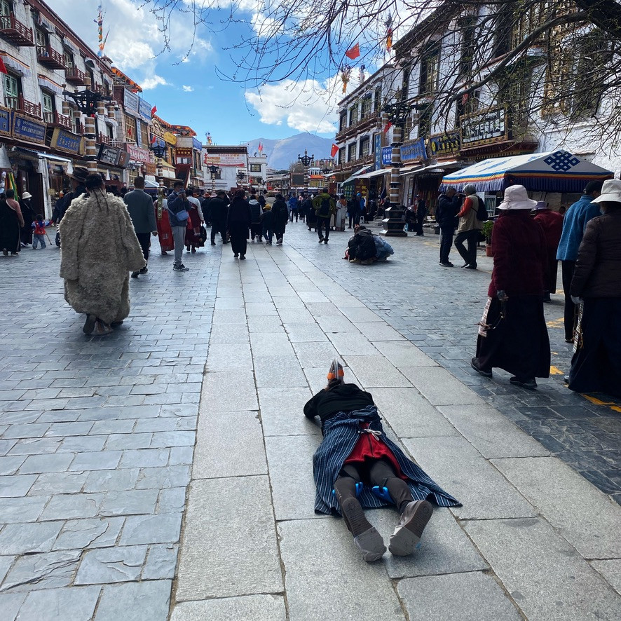 在拉萨逛到大昭寺,会看到很多这样的朝圣者,有时候也是挺羡慕这么浓厚的信仰。