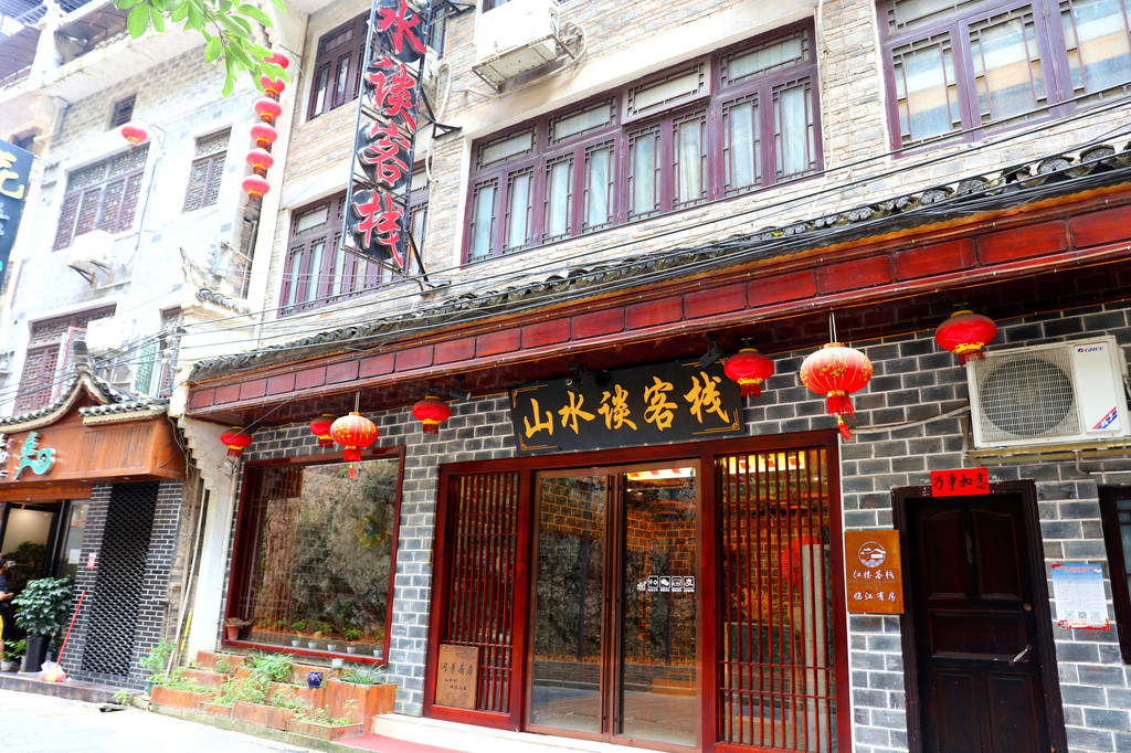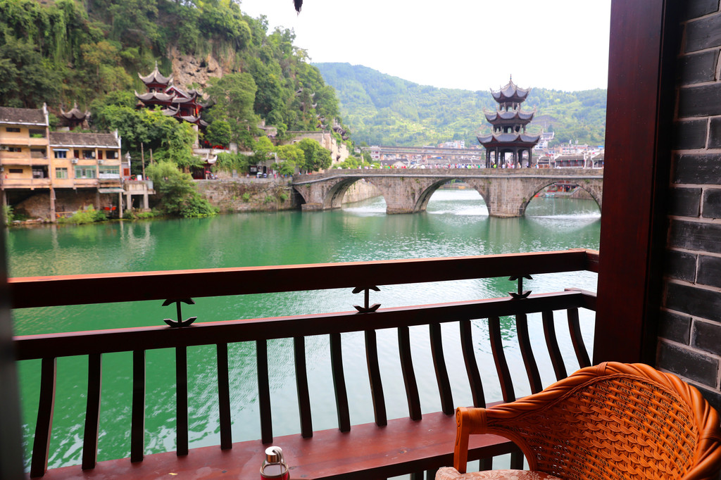 7月30日镇远古城是贵州比较成熟的旅游景点,旅游设施比较完善,整个镇远古镇内的客栈业特别发达,因此我们一开始没有过早的预订镇远的宾馆,可能是因为恢复跨省团队游后,原先关注过的位置、景观好的几家客栈价格一下子上涨了好多,这下给人感觉不太好,不去订这几家坐地起价的客栈了,好在古城内沿着舞阳河同位置的客栈选择很多,我们预订的镇远山水谈客栈就在祝圣桥附近,选的带阳台的河景房,客房不大,但面对青龙洞,坐在阳台观景休闲很惬意,因为古城内车辆限行,而周边的停车位又很少,停车有点不方便,来客栈之前老板很负责地指导我们把车停在客栈河对岸的林业局停车场,并派人来接我们,服务还是挺不错的,镇远古城本身地方不大,祝圣桥,石屏山、青龙近在咫尺,吃饭逛古镇也很方便。