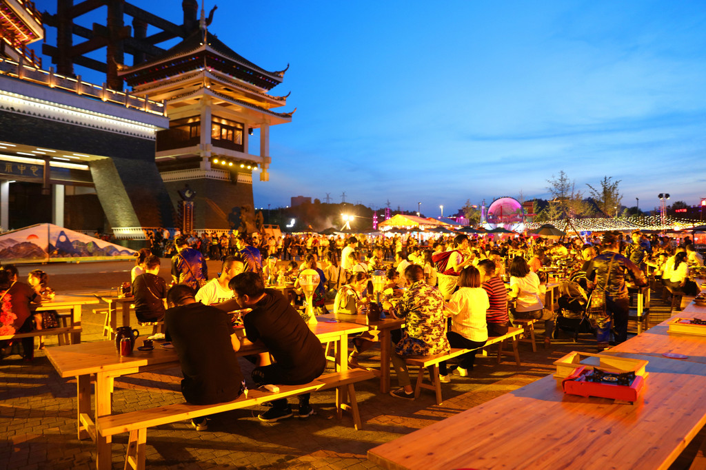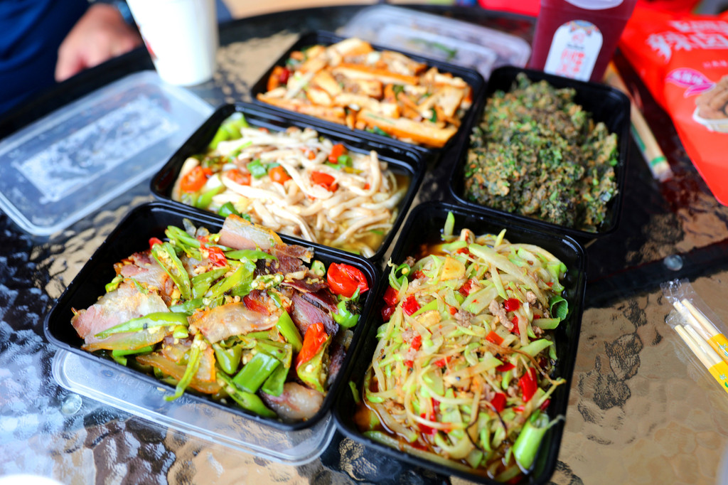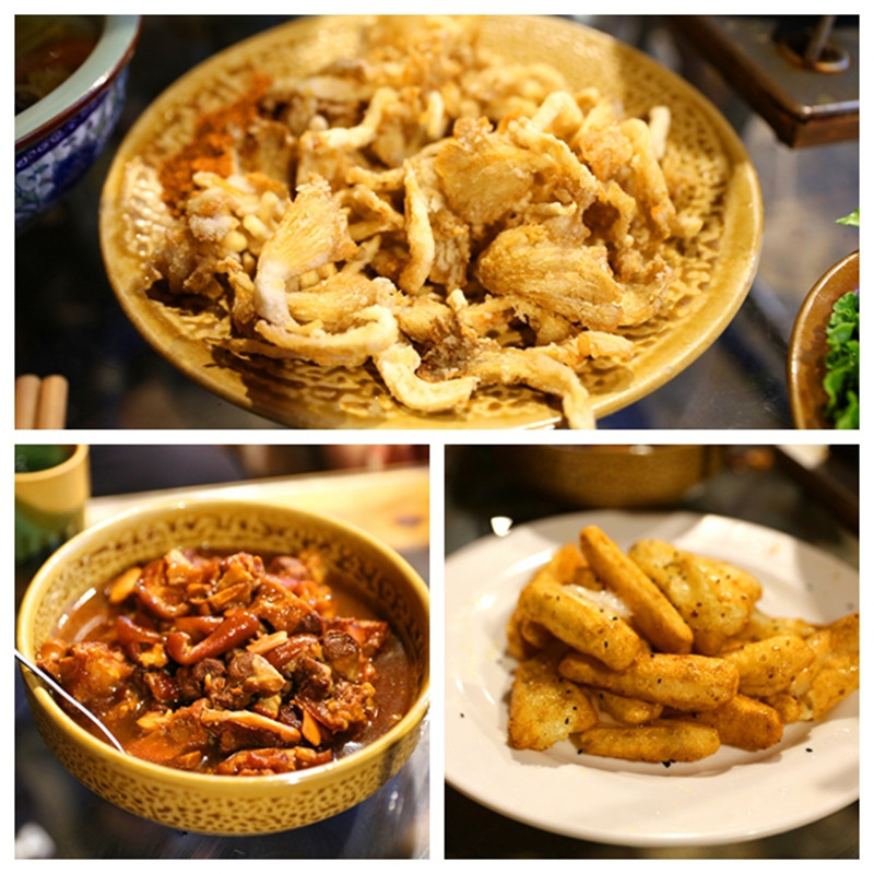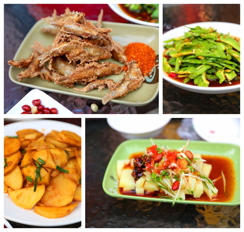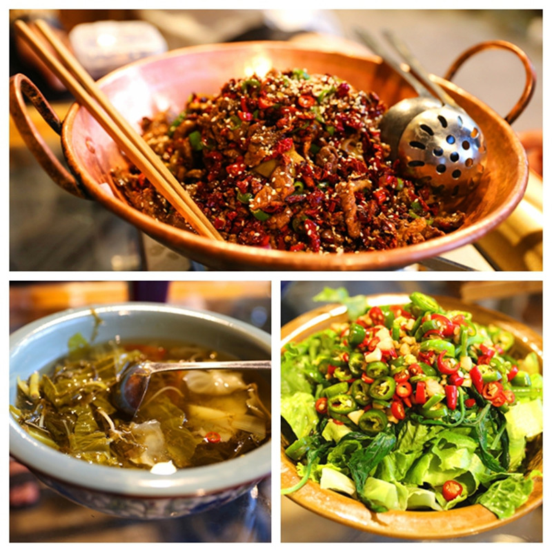 此刻辘辘饥肠的我们办好入住后赶紧找吃的,小镇里餐馆客栈林立,灯光璀璨、霓虹闪烁。灯箱上打出各种民族风情特色菜以及各类烧烤小吃,随便找了家看上去人气很旺的店,特意找了临街室外的桌子,点上几样当地特色风味美食,天光月明、晚风送爽、美景美食,疲惫一扫而光。