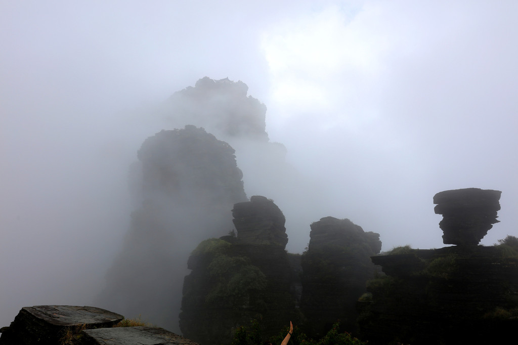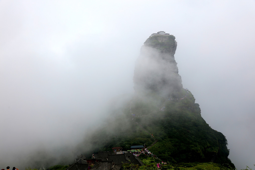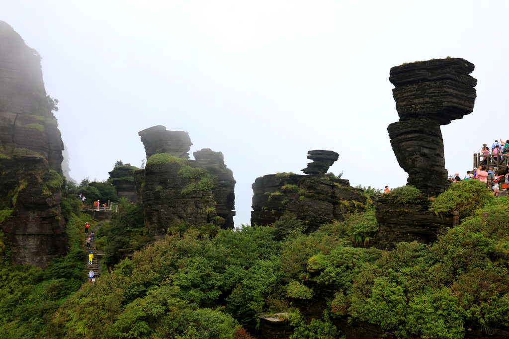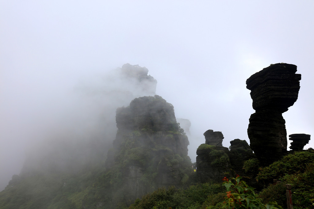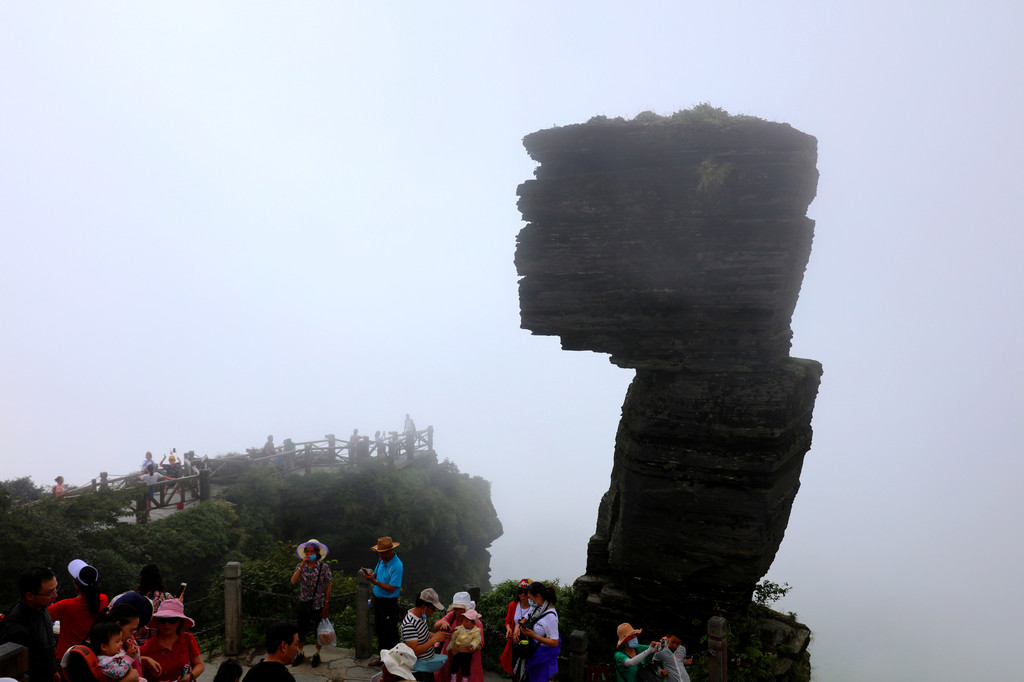 这几年因为梵净山被评为世界自然遗产后,成为贵州最热门也是当前国内最网红的地方之一,能预约到梵净山门票是目前来贵州游最难的一件事,提前七天,早上八点开抢,基本上是秒杀,我们运气好的抢到了票,而到了梵净山就要看你的运气了,因为不管季节,无论早晚,梵净山一直在弹奏云的狂想曲。十天里,八天有大雾,一切无意无心,一切自在自然,千奇百怪,什么“天空之城”、“新老金顶”、“磨菇石”,一切尽在不言中,真的是近在咫尺、远在天涯。