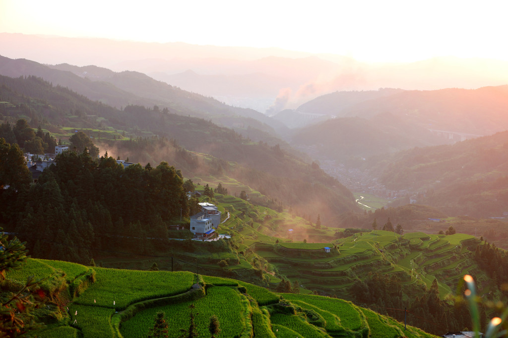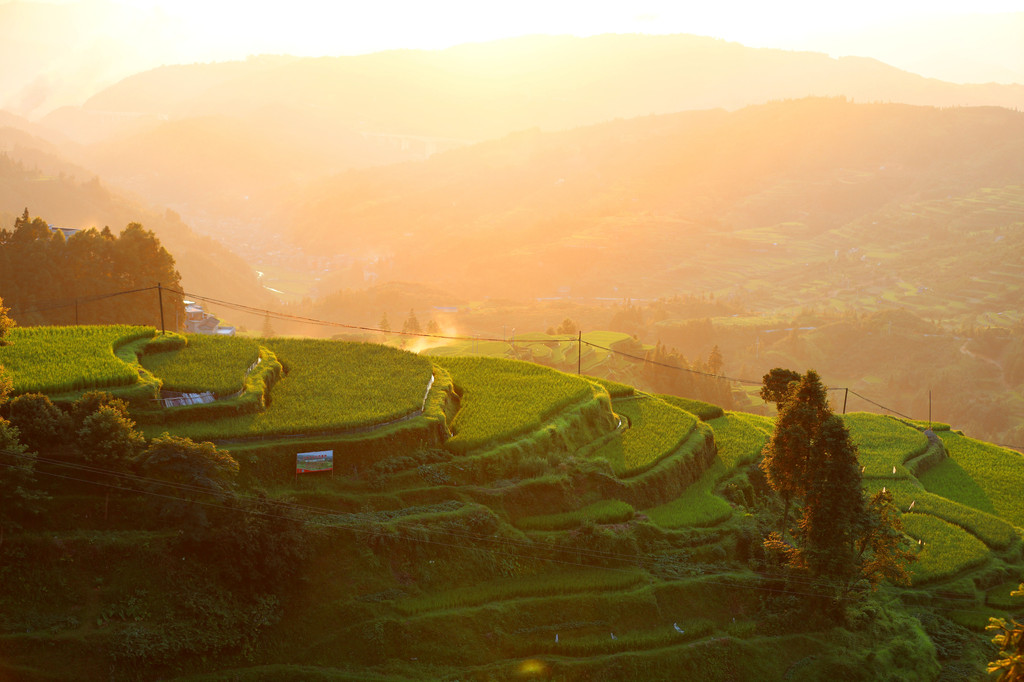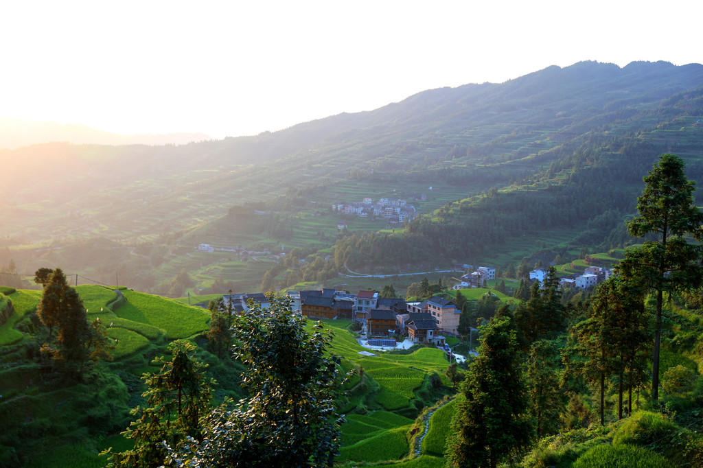 和西江千户苗寨相比肇兴侗寨,游人少了好多、也安静,商业化也不是那么浓,而离肇兴侗寨几公里外的山巅,有个更原生态的堂安侗寨,这里有一条“中国七大最美徒步线路之一”的堂安梯田徒步线,堂安侗寨周围青山环抱,古树参天,到处是风景入胜的梯田。如果秋天稻谷成熟丰收时,这里的景色更美。