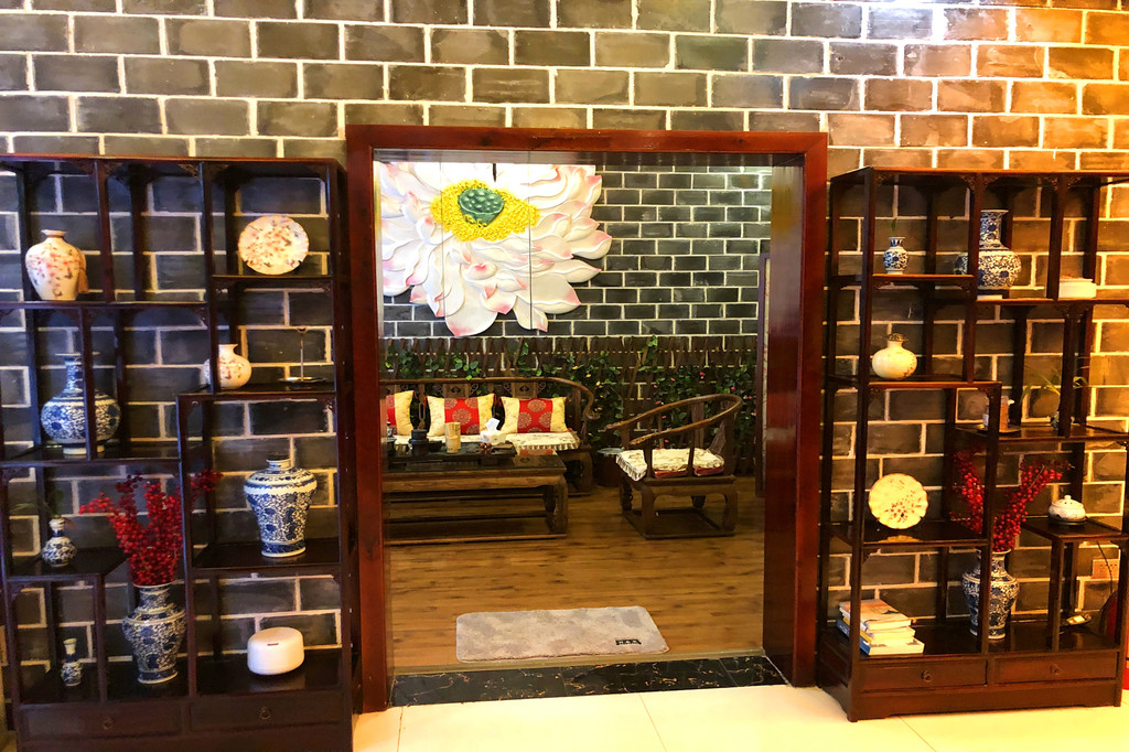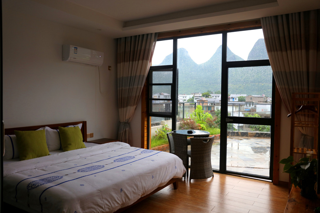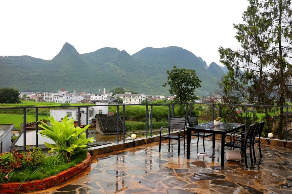 7月26日我们在兴义入住的是位于万峰林景区下纳灰村乡旮旯客栈,这家民宿是我们这次整个贵州行程中住宿体验比较好的一家,当我们游览完万峰林,穿行在刚才在峰林上看到的犹如世外桃源般的布依村寨时,第一眼就喜欢上了这里,来到四周一片田园风光的客栈,一场倾盘大雨迎面而来,我们坐在楼上的露台,听着雨声,看着峰林,喝着茶和民宿老板聊着天,老板曾在某大型企业做过九年的销售,见过世面,现在回到熟悉的故土开创新事业,是个有想法的人,万峰林周边有很多民宿客栈,客栈虽然不能和走高端路线的、及网红民宿相比,但乡旮旯客栈因为是自己家的房改建,价格亲民,乡旯旮客栈有它特色一面,虽然外观不惊艳、但内部装修设计风格简洁,房间出乎意料的好,每个房间大、平台大,采光好,通透,因正对着喀斯特地貌的山峰,在三楼和二楼平台可以看得很远,而且去周边的大榕树下纳灰村中心吃东西、赶集、观光都很方便,但又相对僻静。老板为人热情、真诚,如果不是因为行程的原因,真想在这里多住一天。