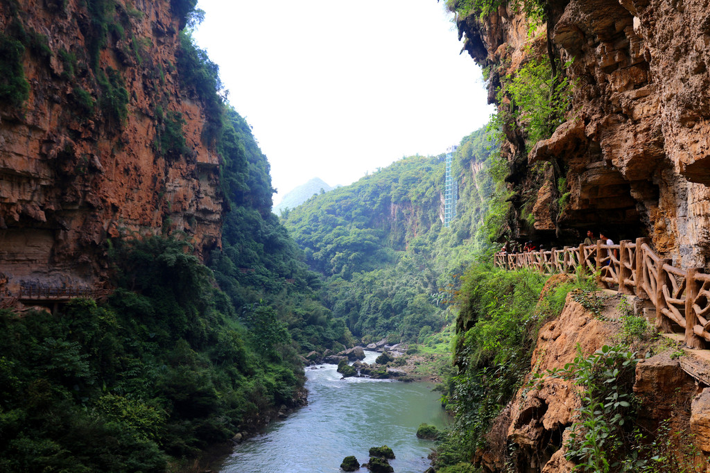 早上睡到自然醒,吃过宾馆的自助早餐后我们向我们此次行程的最后一站贵阳进发了,驶过全球第二高桥、全长2172.4米、主跨1130米、桥面至谷底深达406米的清水河大桥,很快我们就进入贵阳境,没有进市区,先顺游位于贵阳市郊花溪的夜郎谷,因为贵州古称夜郎,我们想来这里追寻贵州的以往。