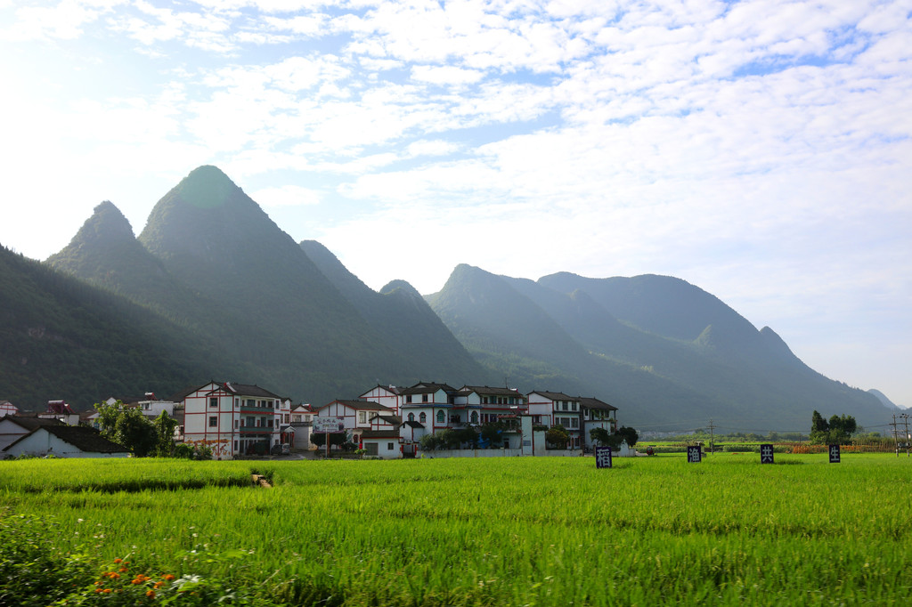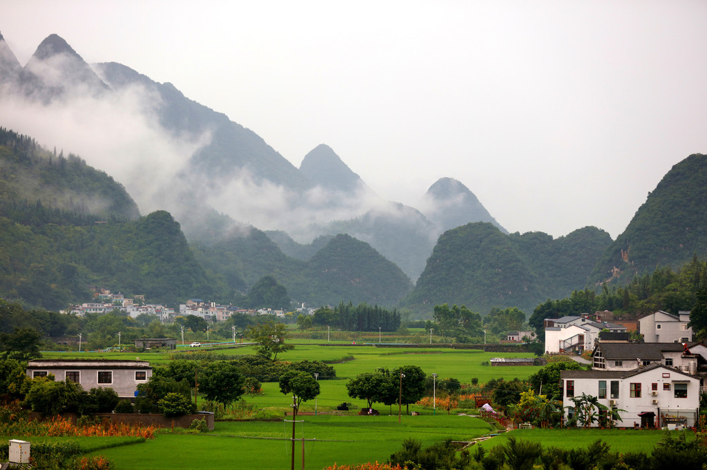 雨停了,雨后空气清新、稻花飘香,远处峰林间云雾缭绕,像极了一幅水墨画,这里真是峰似林、田坝胜锦、村落如珠。一场大雨打乱了我们去四处逛逛的计划,只能在乡旮旯四周的田园间随意走,这里的村寨比一些过度开发的古镇古村更质朴,当然旅游业也带动了这里的发展,附近还有不少装饰的非常小资情调的民宿,建筑与自然山水无缝衔接,而我们在田野阡陌间穿梭闻着花香,听着村落间鸡鸣犬吠之声,这里给我们带来的是外面世界少有的质朴和宁静。