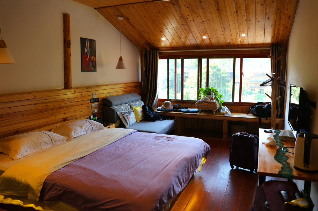 7月29日去肇兴侗寨是我们到贵州开始行程后临时决定增加的,订住宿也是因为体验了花筑·西江苗寨陌上花开客栈后,对花筑品牌喜爱后,毫不犹豫地就订了这家花筑·肇兴那年花开精品酒店,这家花筑品牌的酒店,位于肇兴侗寨观光车停车点附近,位置优越,交通便利,推开窗,就是景观湖,老板服务也热情,派人到观光车停车点帮我们拉行李,耐心介绍着游玩攻略,最后让我们成行了计划外的但给我们带来意外惊喜的堂安侗寨,虽然与西江苗寨陌上花开客栈相比景观、设施、舒适性等稍有差距,但因为这里是小众景区,游客不多,价格相对便宜,肇兴那年花开精品酒店在价格上完胜西江苗寨陌上花开客栈,这次二家花筑品牌的客栈住下来切身感受花筑品牌的客栈真的不错。