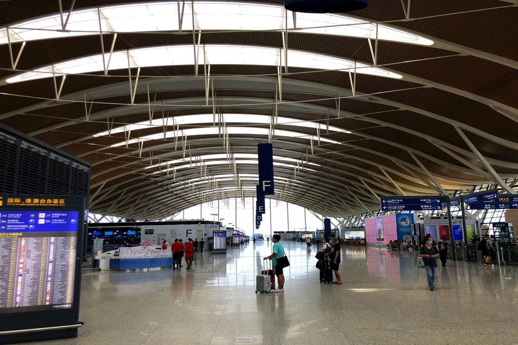 7月24日下午,时隔将近半年后我们又与浦东机场相遇了,虽说社会生活正在逐步恢复正常,但和往年相比浦东机场人流密集程度明显下降了很多。很快地办理了登机和安检手续后,我们这次登机口在三号航站楼,需从二号航站楼乘坐类似香港机场的机场连接地铁,这也是我第一次来到三号航站楼,这幢运营不久的三号航站楼,目前还没有多少航司航线航班,本应繁忙无比的航站楼倒更像是个观光景点,从二号航站楼到三号航站楼顶端的登机口需多花二十分钟左右,看来以后要注意登机口是否在三号航站楼,一定要多预留一点时间。