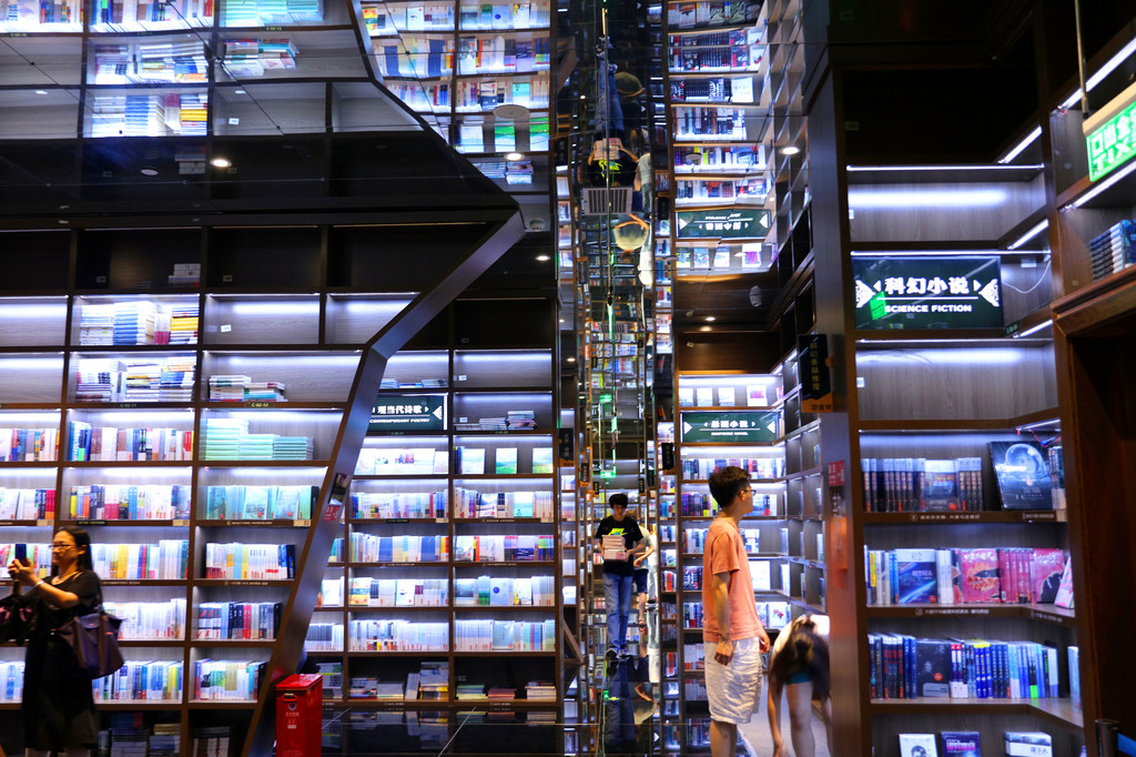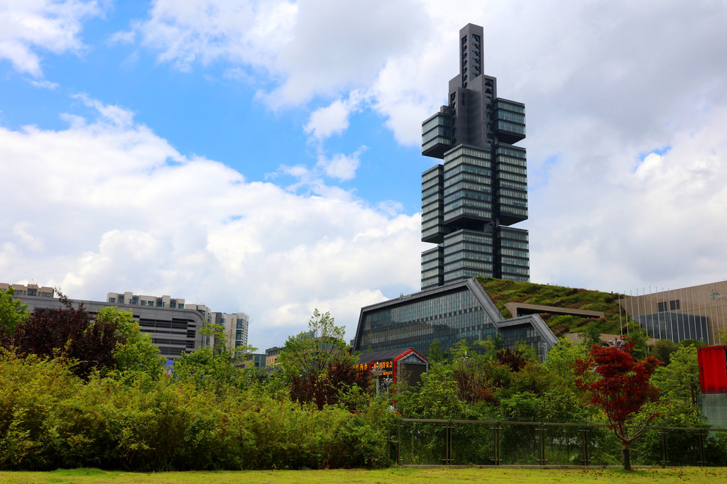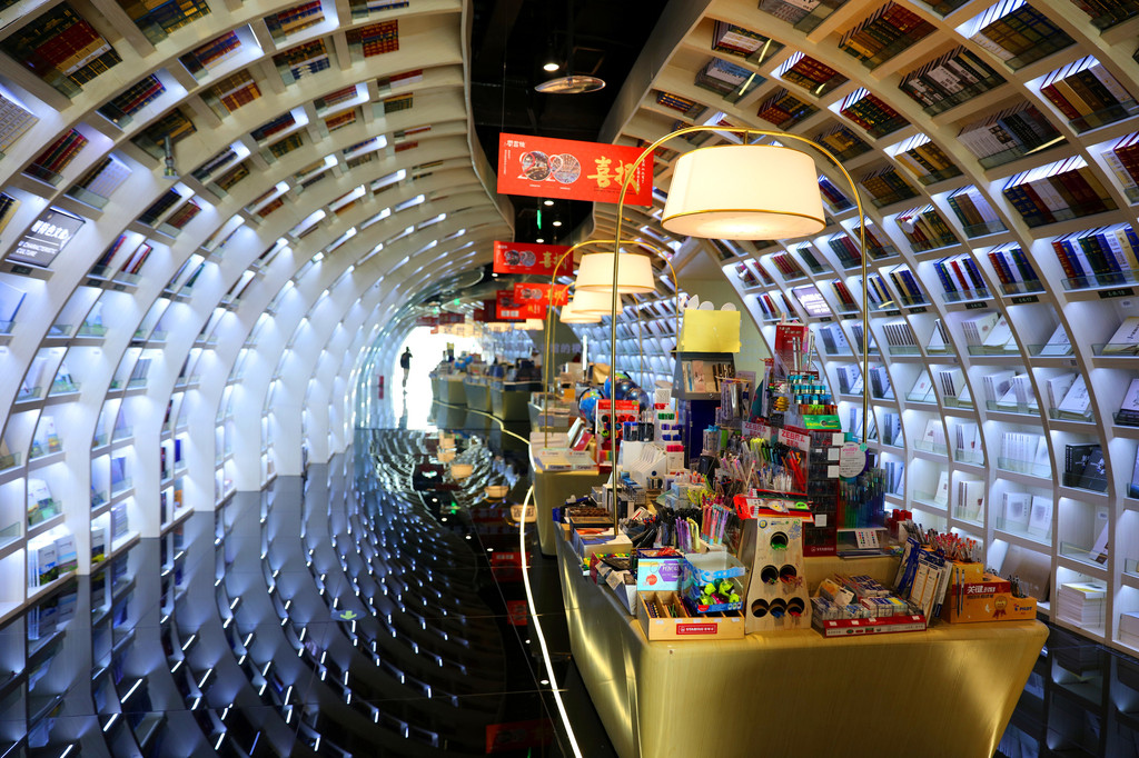 首站来到观山湖区贵阳综保区·云上方舟智慧购物中心的贵阳的钟书阁书店,这家书店曾被美国WIRED杂志评为品味“全球10所最美书店“,书店设计融入了贵州的喀斯特地貌元素,以山水,溶洞,少数民族图腾构成贵阳钟书阁的特色。走进书店仿佛进入了幽邃的溶洞,天花板上倒垂而下的书本犹如溶洞中的“钟乳石“,而整个人像置身在时空隧道中,科技感满满。第二站则是在云上方舟智慧购物中心后方不远的贵阳国际会议中心201大厦,又称不规则大厦,又因其形似芦笙,贵阳人更喜欢叫它“芦笙楼”。201大厦建筑总高为201米,目前是贵州最高的全钢结构建筑,去年获得《世界最高的钢桁架悬挂结构大厦》世界纪录认证,是又一个“疯了”的建筑,让人不得不佩服设计师的脑洞,十个办公单元悬挂在离地面36米的空中,它是高水准的5A级办公写字楼,被称为“贵阳城市新地标”。而贵州金融城也在这里,作为贵州省金融产业的企业总部基地,汇集了全省的银行、证券、保险、担保等金融产业企业,四周全是高耸入云的超高建筑,眼前这情景真是无法想象,这可是在原来经济最落后的贵州。