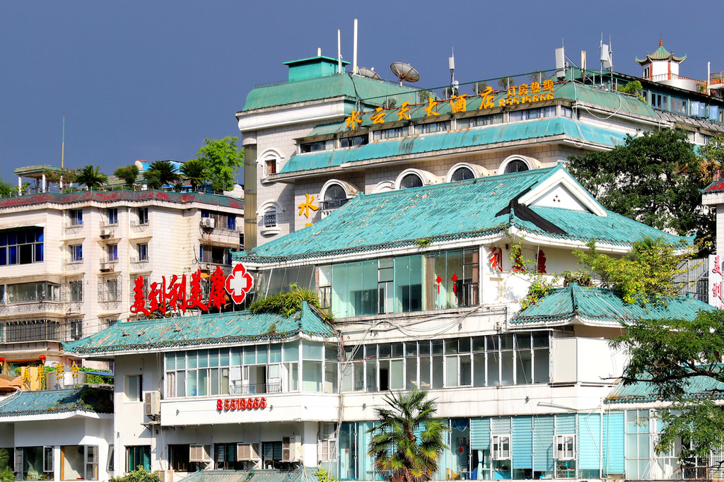 从花溪夜郎谷出来,我们直奔贵阳市中心,我们入住在位于南明河边离甲秀楼一步之遥的水云天大酒店,这家座落在南明河边翠薇巷的酒店虽然是家老酒店,但位置绝对一流,在客房内就能看到甲秀楼,走到甲秀楼也只要三分钟,而周边超市,餐厅一应具全,购物、饮食非常方便。