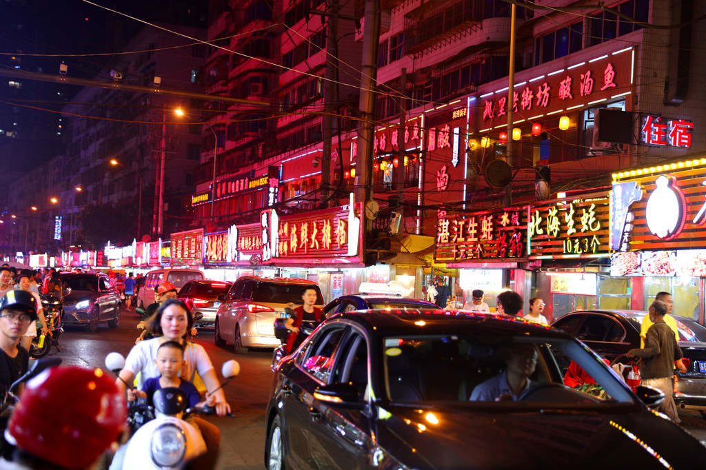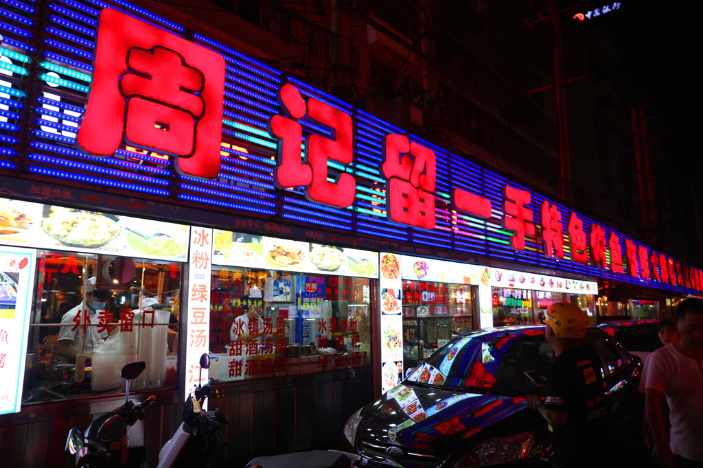 都知道,除了适合避暑,山水宜人,贵阳还是不折不扣的美食之城,城内“十步一摊,百步一店”,从早晨的一碗粉到深夜的一碗粥,可能带上256G的胃都不够吃。而我们选择住南明河边,除了观赏甲秀楼,晚上逛夜市品美食也是一个重要因素。等雨停了,气温凉快了,我们出门觅食去了,贵阳大名鼎鼎的“深夜食堂”青云路美食街离我们入住的酒店不远,我们直奔主题而去。