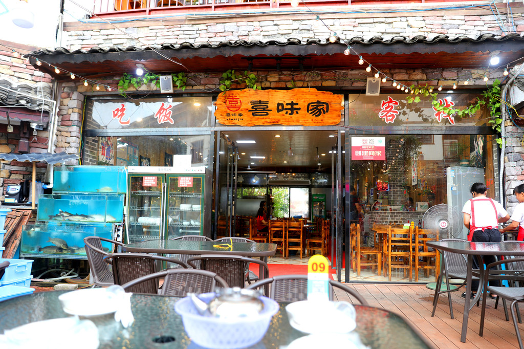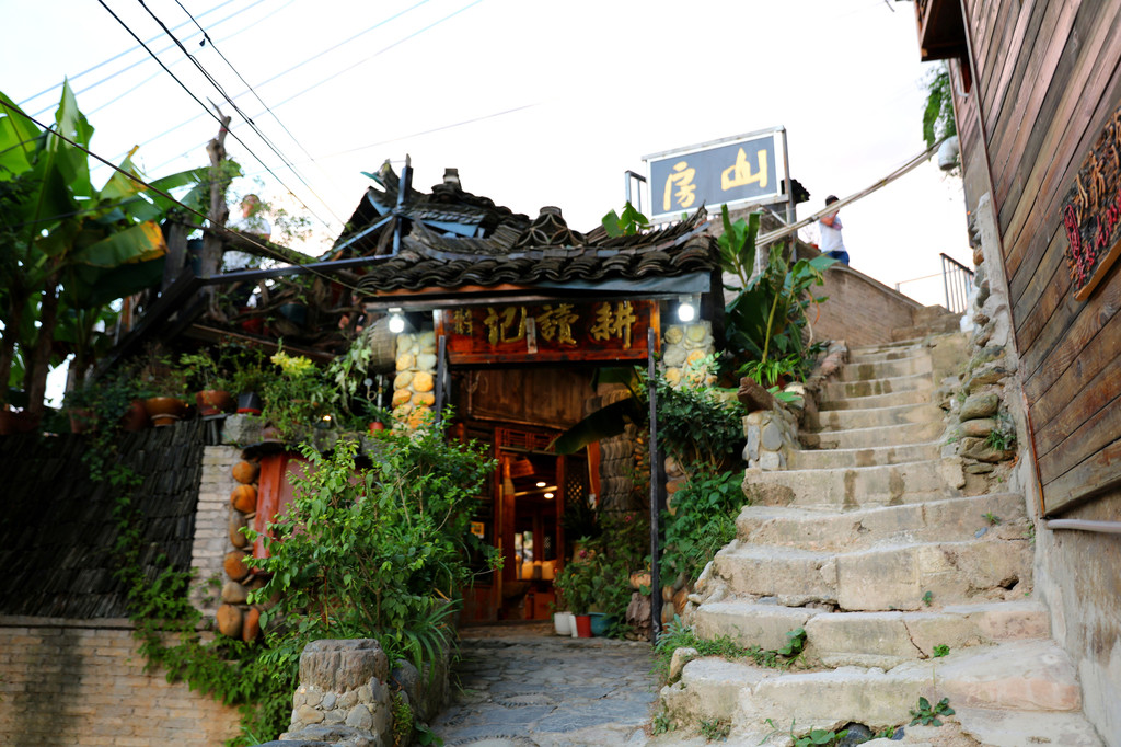 来到位于一号风雨桥附近一处半山腰的网红耕读记餐厅,这家餐厅的观景阳台上摆满了餐桌,绝对是一处亮点,当然他们家的菜也是非常有特色,喝着小酒,看着风景,和看上去很有文艺气质的老板聊着天。非常有意思的一次餐饮体验。